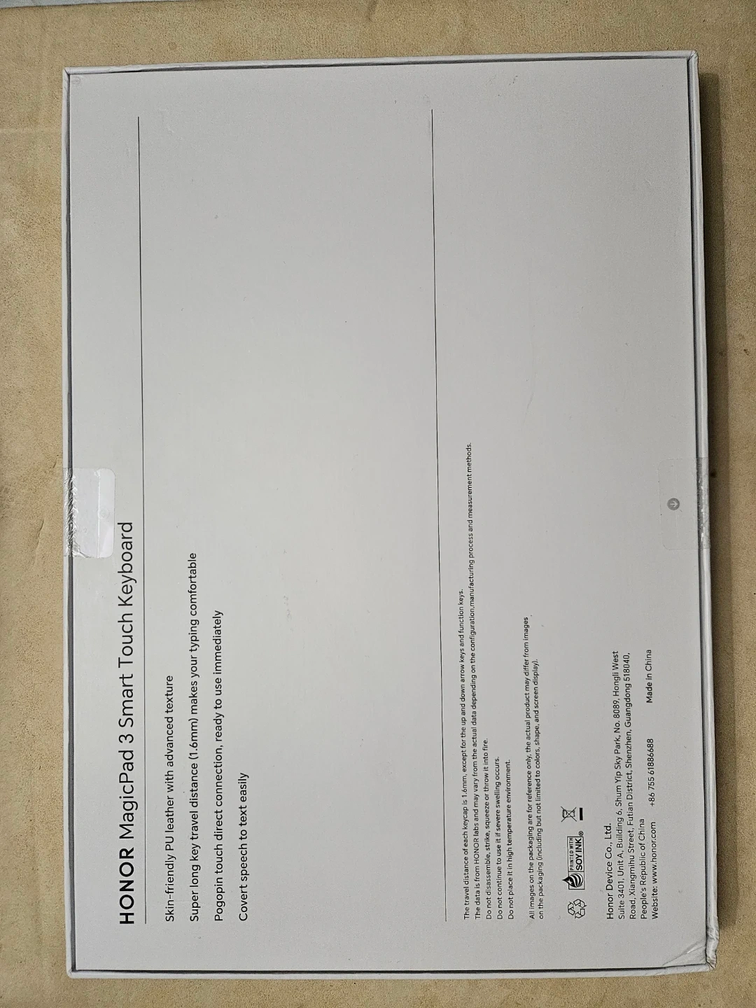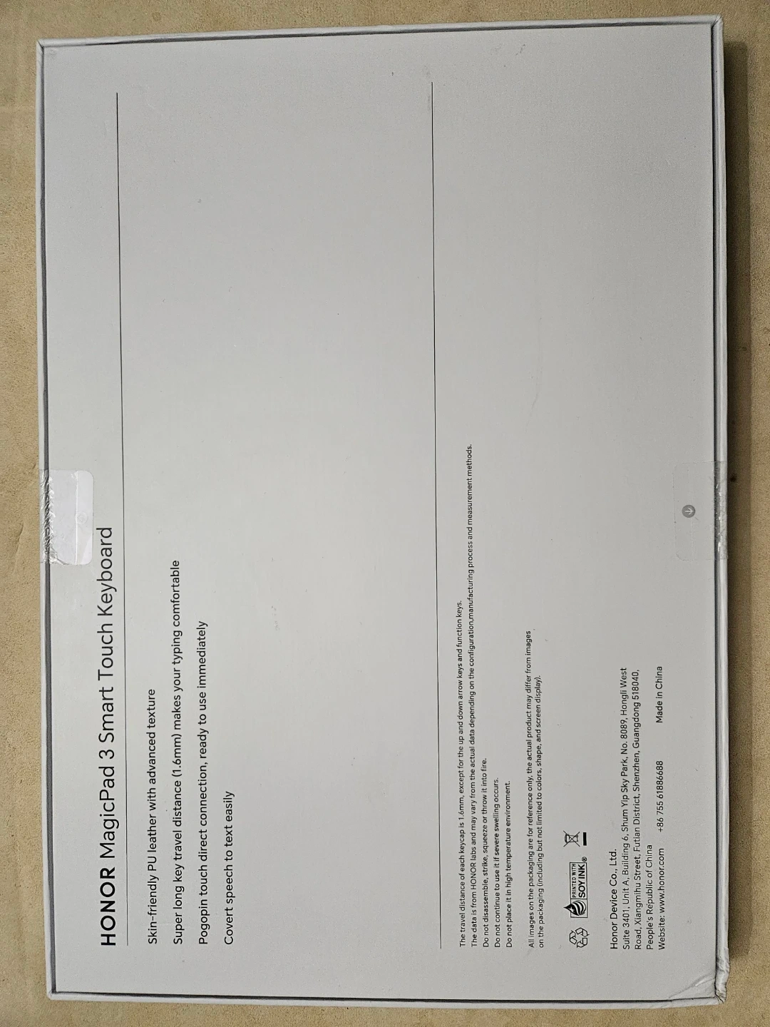 Selling a HONOR MagicPad 3 Smart Touch Keyboard! It features skin-friendly PU leather with an advanced texture. The keyboard has a super long key travel distance (1.6mm), making typing comfortable. It also has pogopin touch direct connection, ready to use immediately, and covert speech to text easily