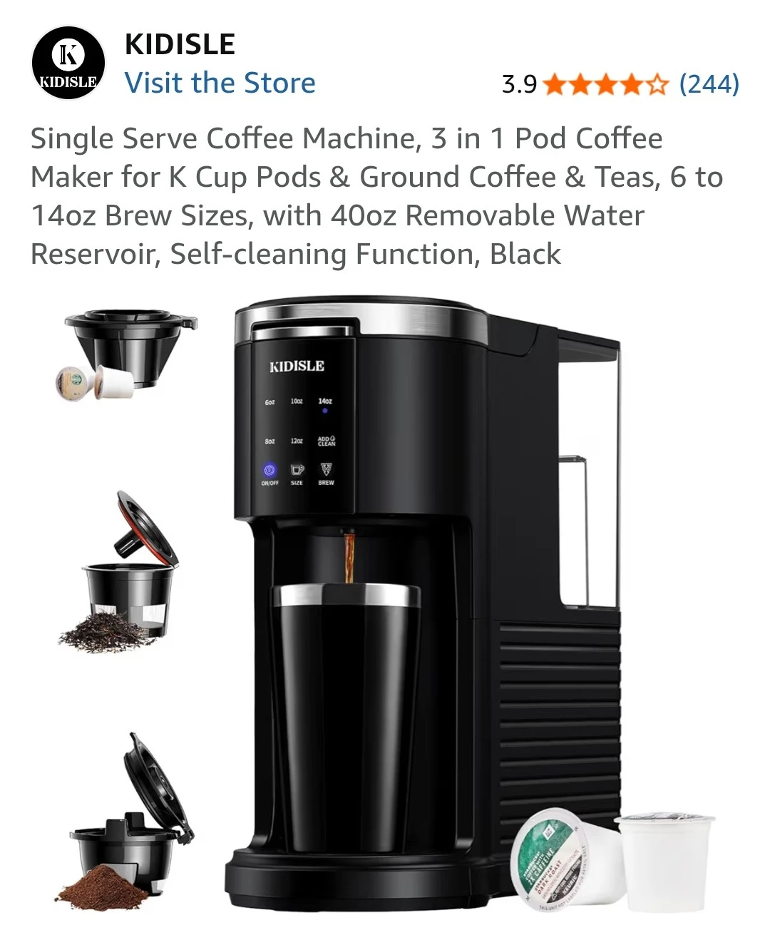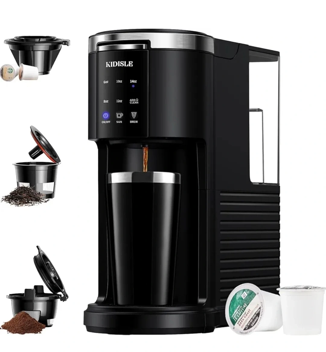 Single Serve Coffee Machine, 3 in 1 Pod Coffee Maker for K Cup Pods & Ground Coffee & Teas, 6 to 14oz Brew Sizes, with 40oz Removable Water Reservoir, Self-cleaning Function, Black