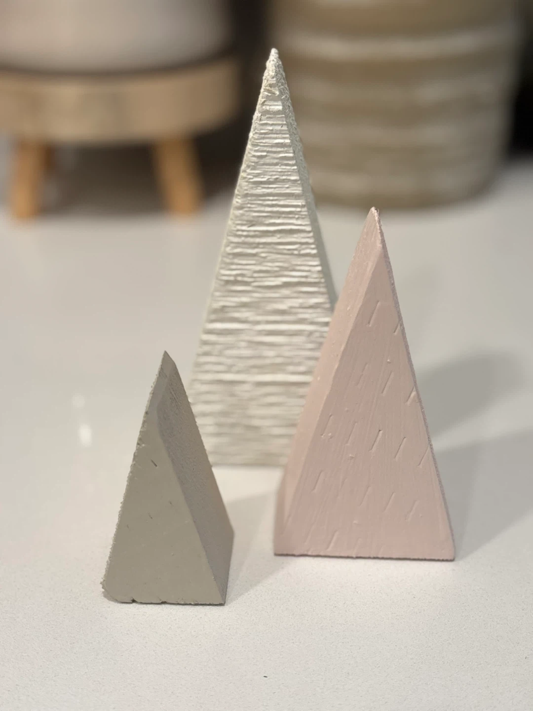 Selling a cute set of three decorative wooden Christmas trees! They come in varying sizes and colours, perfect for adding a touch of festive cheer to any room.