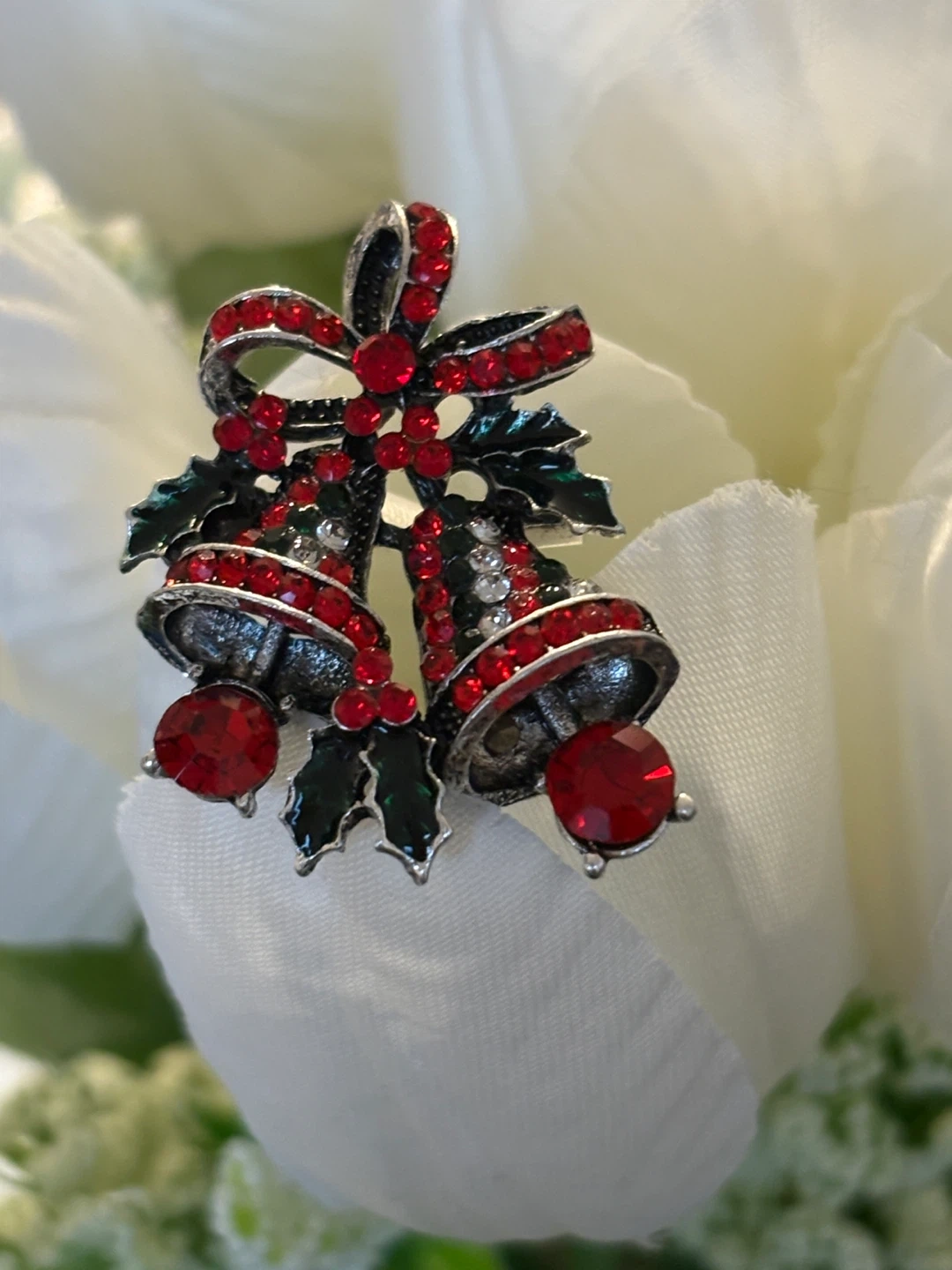 A festive Christmas bell brooch featuring red and silver accents! It's perfect for adding a touch of holiday cheer to your outfits or accessories during the festive season.