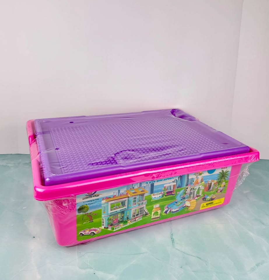 - Creative role-play fun. Compatible and easy to build: Comes with instructions and works with all major building block brands. Large bucket holds all the pieces, and the lid doubles as a base plate or display area.