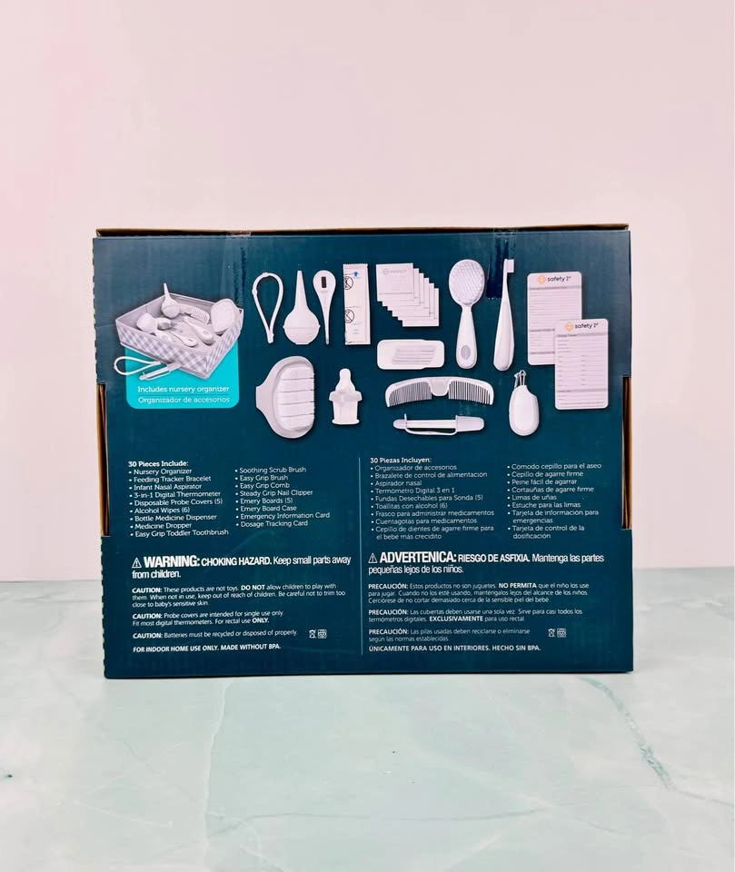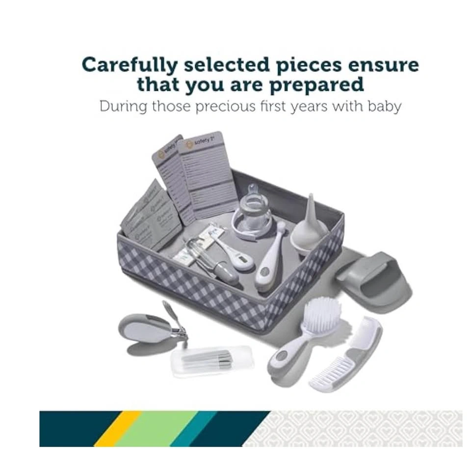 Complete 30-Piece Set: Includes everything needed for baby care: thermometer, nasal aspirator, nail clipper, medicine dropper, brushes, combs, wipes, emery boards, and more.