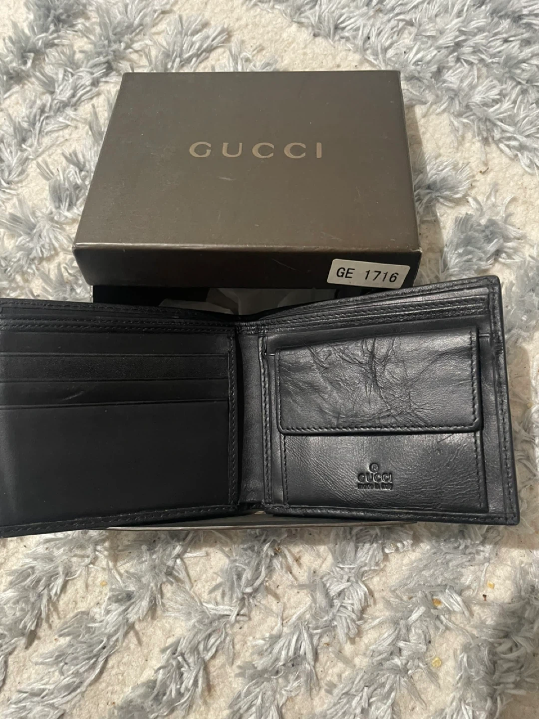 Selling a Brand New Gucci black leather wallet. It has the Gucci logo on the inside. Comes with the original box. A stylish and practical accessory!