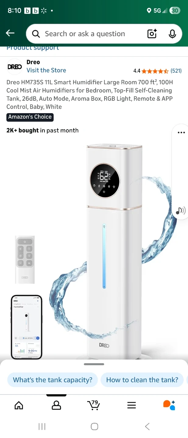 Selling a Dreo HM735S 11L Smart Humidifier. It's a large room humidifier capable of covering 700 sq ft. It features cool mist, self-cleaning, and has a 26dB noise level. It also includes an aroma box, RGB light, remote, and app control. Great for bedrooms or baby rooms!
