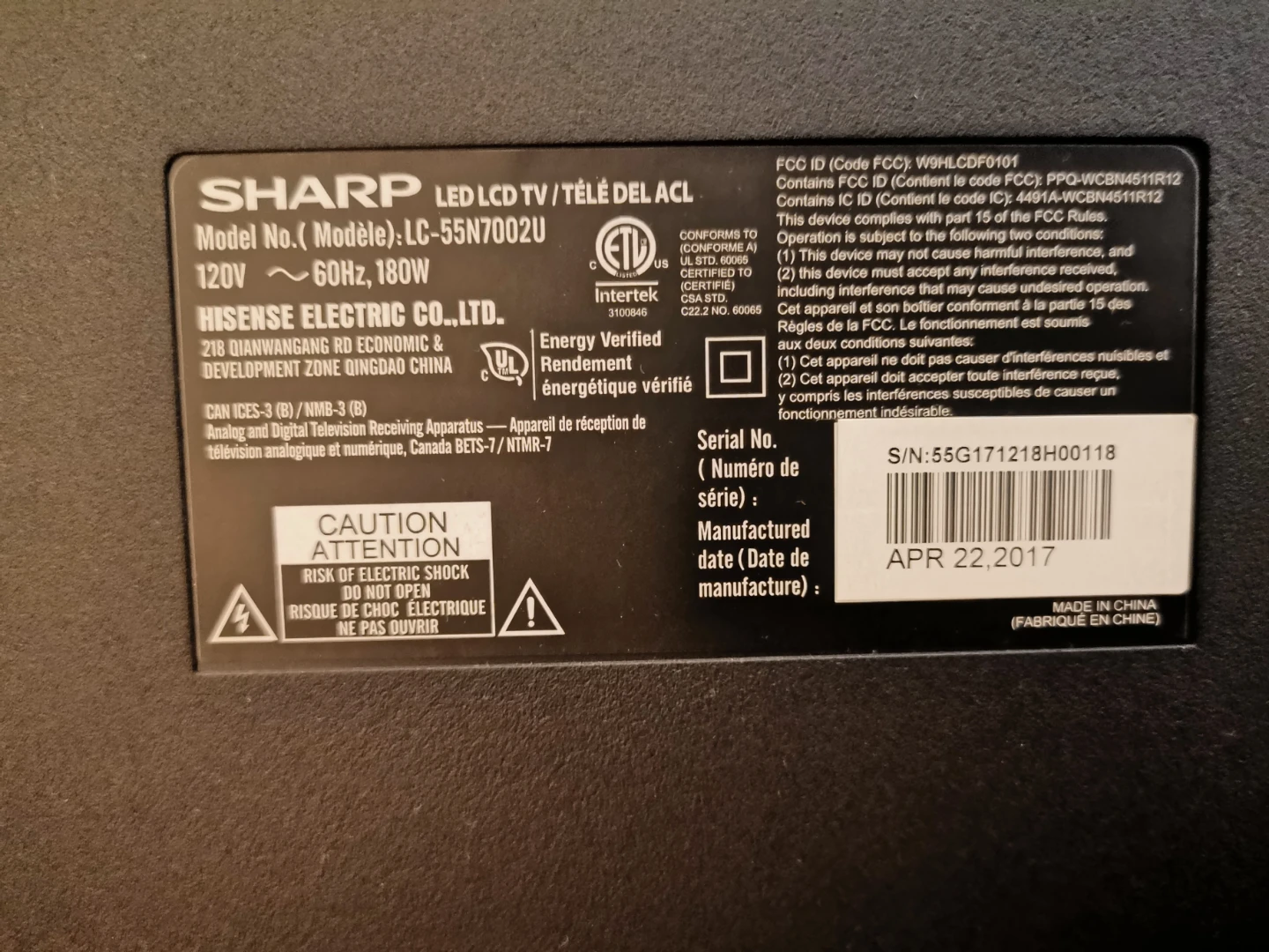 Sharp 55" 4K TV