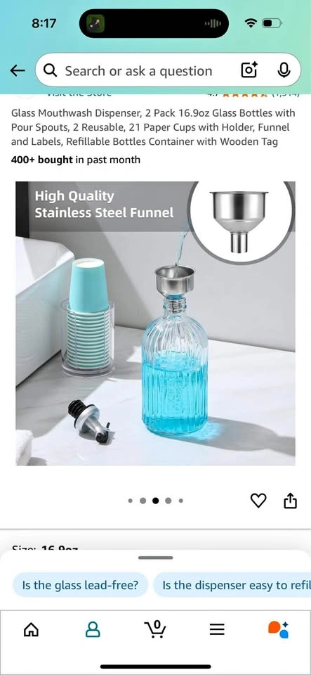 Buy & SellGlass Mouthwash DispenserGlass Mouthwash Dispenser$8Comes with funnel, paper cups, and cups holder. Pickup in Washington Heights.WHERE TO MEETCheck LocationView MapSELLERAvaHudson Heights231 review0 chats·0 favorites·2 views