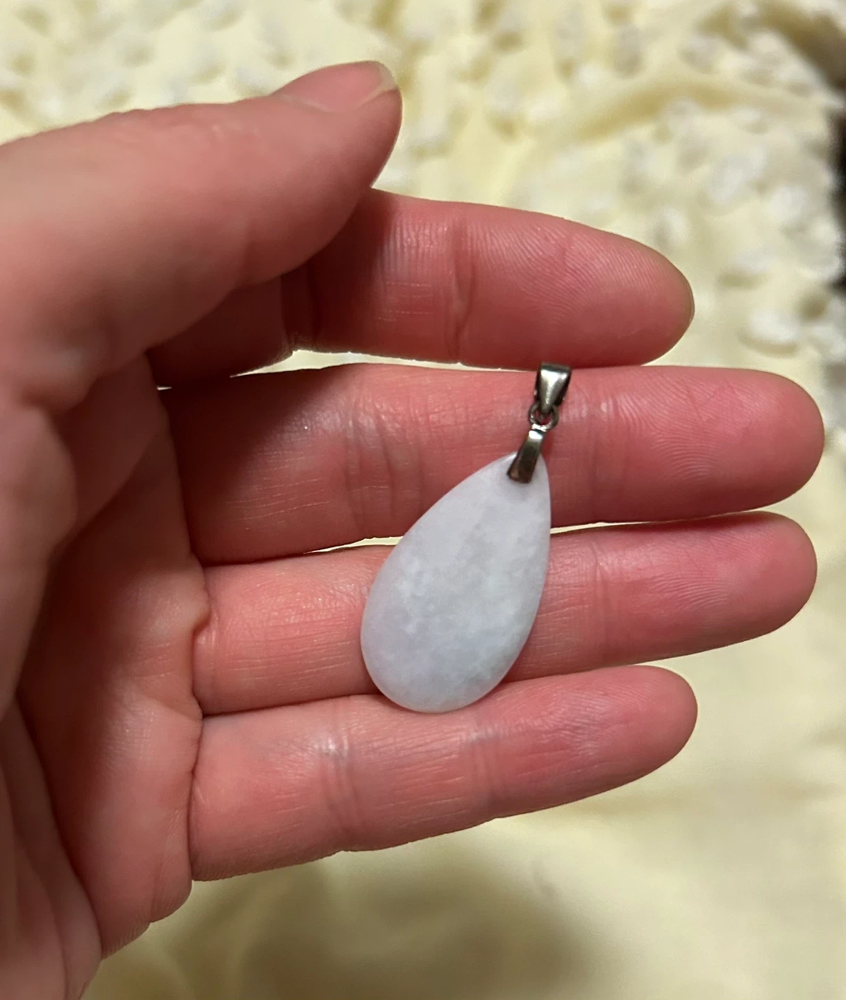 Selling a lovely teardrop-shaped white jade pendant. It's a beautiful piece that would make a great addition to any jewelry collection