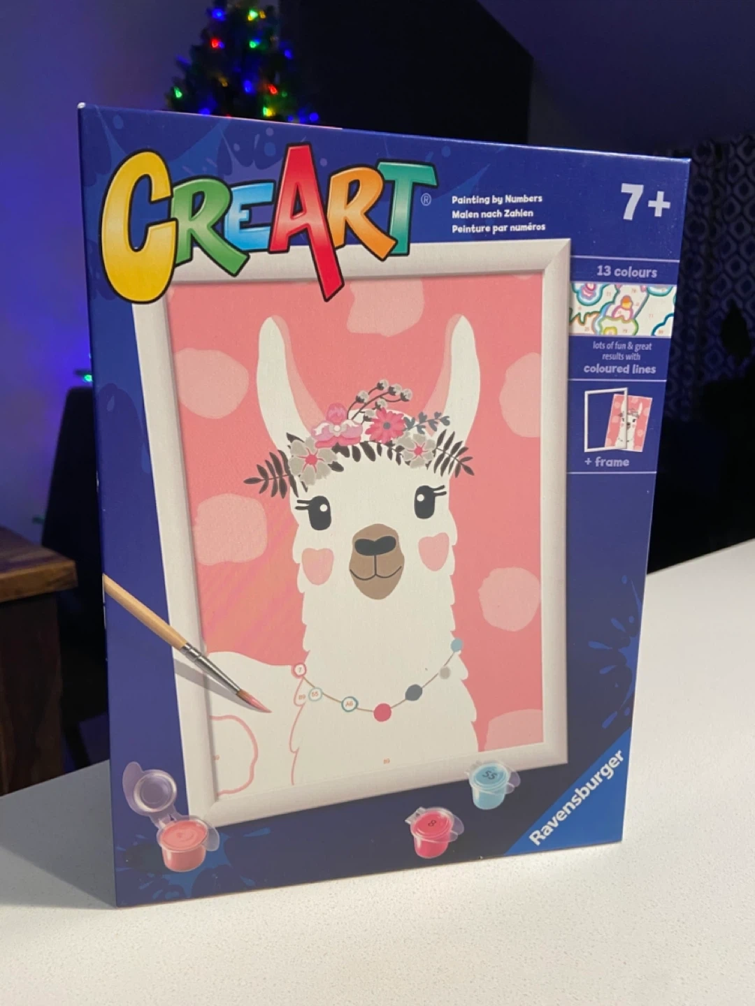 Get creative with this Ravensburger CreArt Painting by Numbers kit! It's perfect for ages 7+ and includes 13 colours to create a fun llama design. Lots of fun and great for coloured lines. Comes with a frame!