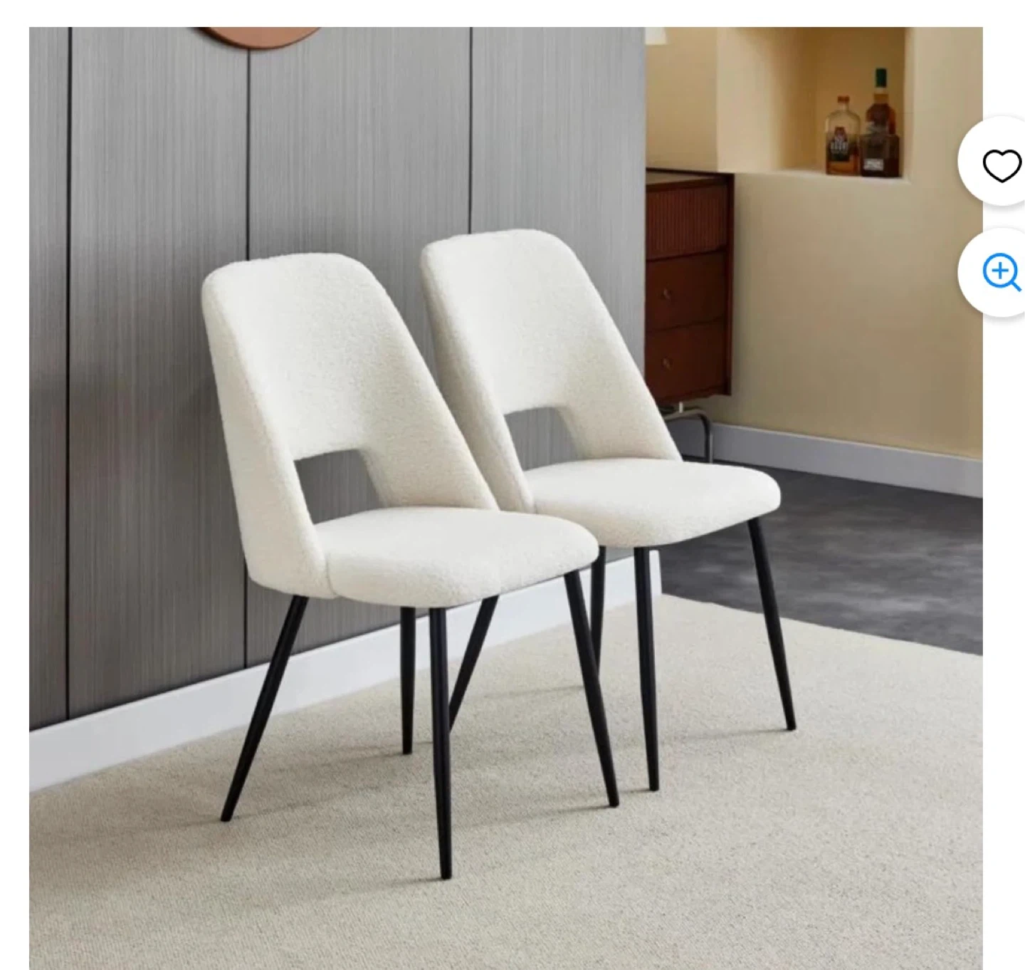 LivinVeluris Mid-Century Boucle Chairs, Set of 2 Cream with Black Metal Legs