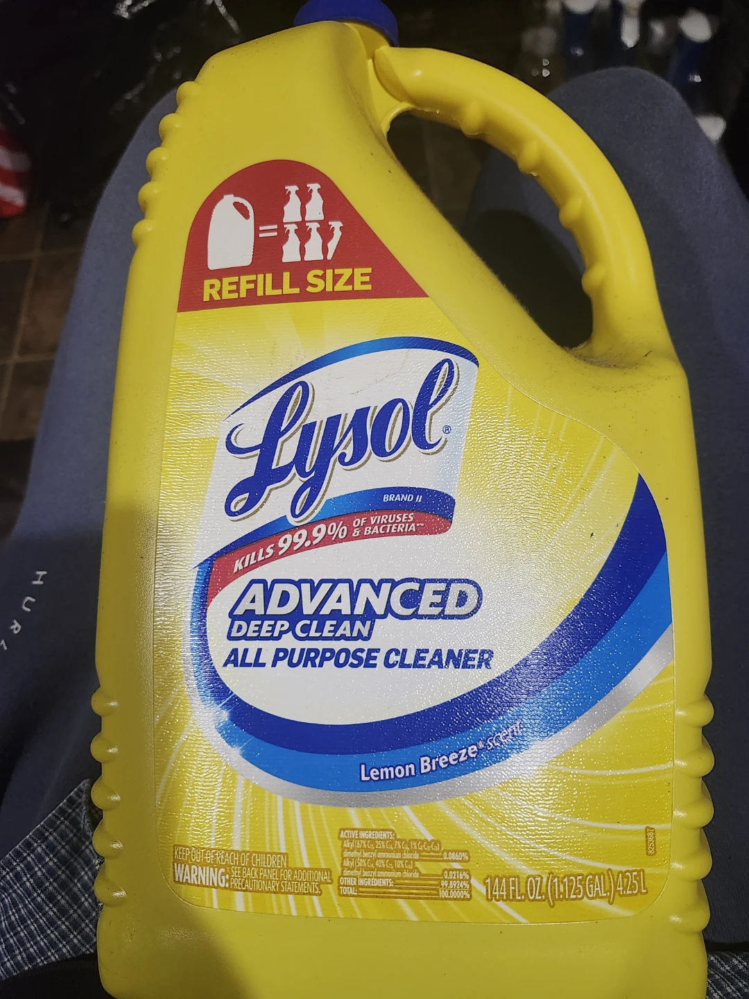 Selling a bottle of Lysol Advanced Deep Clean All Purpose Cleaner in the Lemon Breeze scent