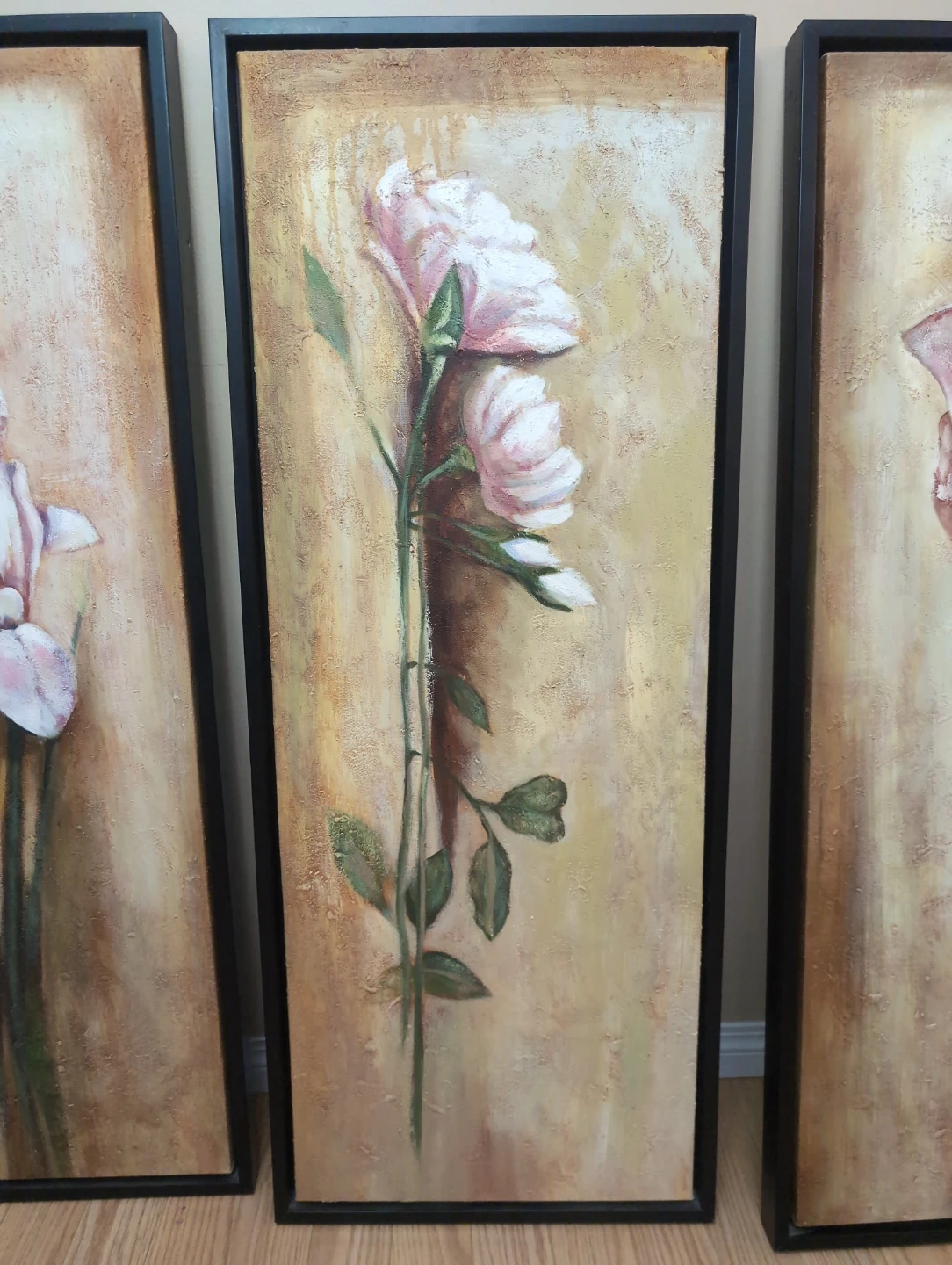 Set of three framed floral print wall art pieces. They're in great condition and would look lovely in any room