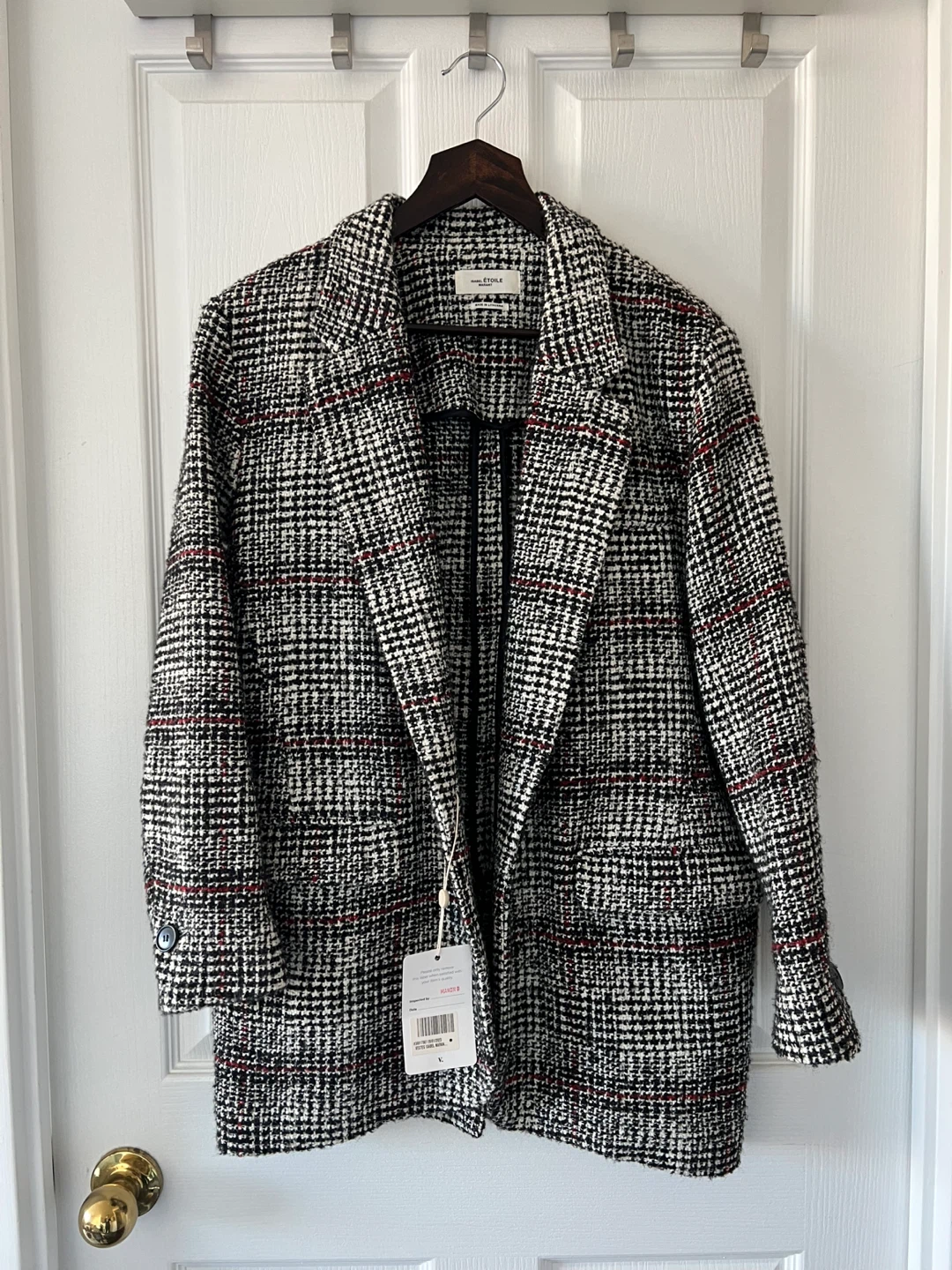 Isabel Marant Étoile jacket. Wool-blend material (44% acrylic, 32% virgin wool, 19% polyester, 5% wool). Unlined, oversize fit. Purchased second-hand and authenticated through Vestiaire Collective (the authentication labels are still attached)