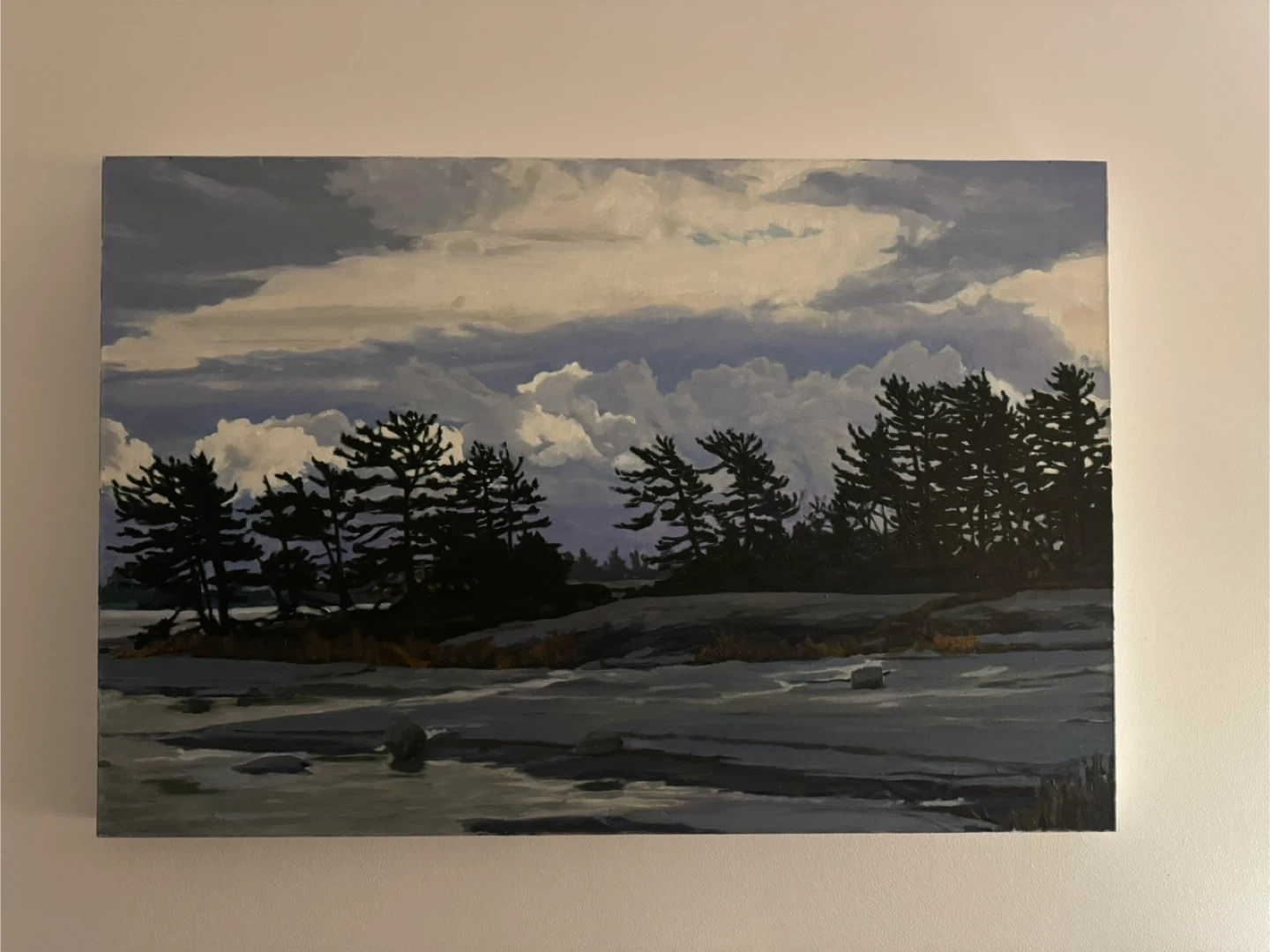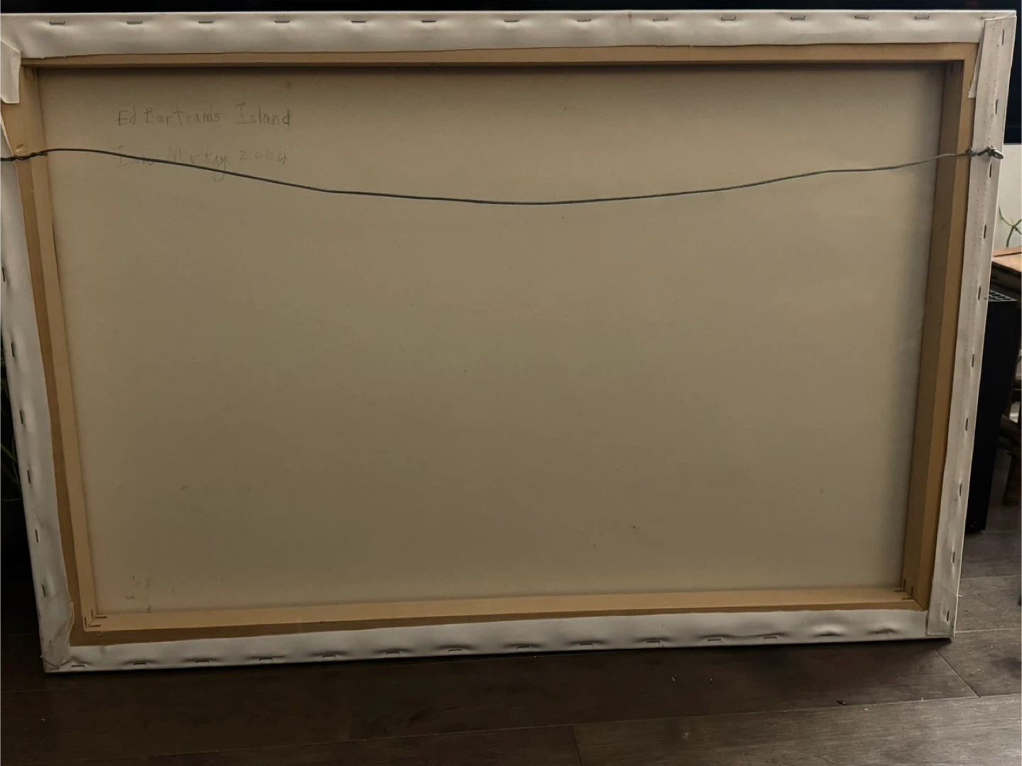 Oil on stretched canvas entitled Ed Bartrams Island dated 2004 by listed Canadian artist Ian MacKay. In good condition. Unframed 36x24.