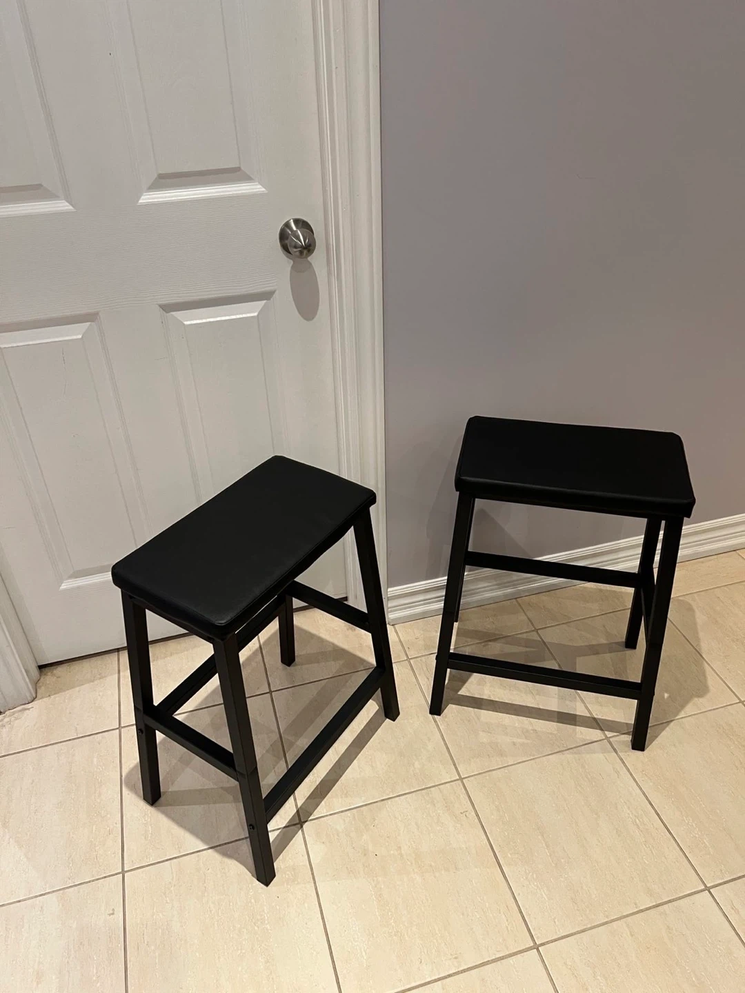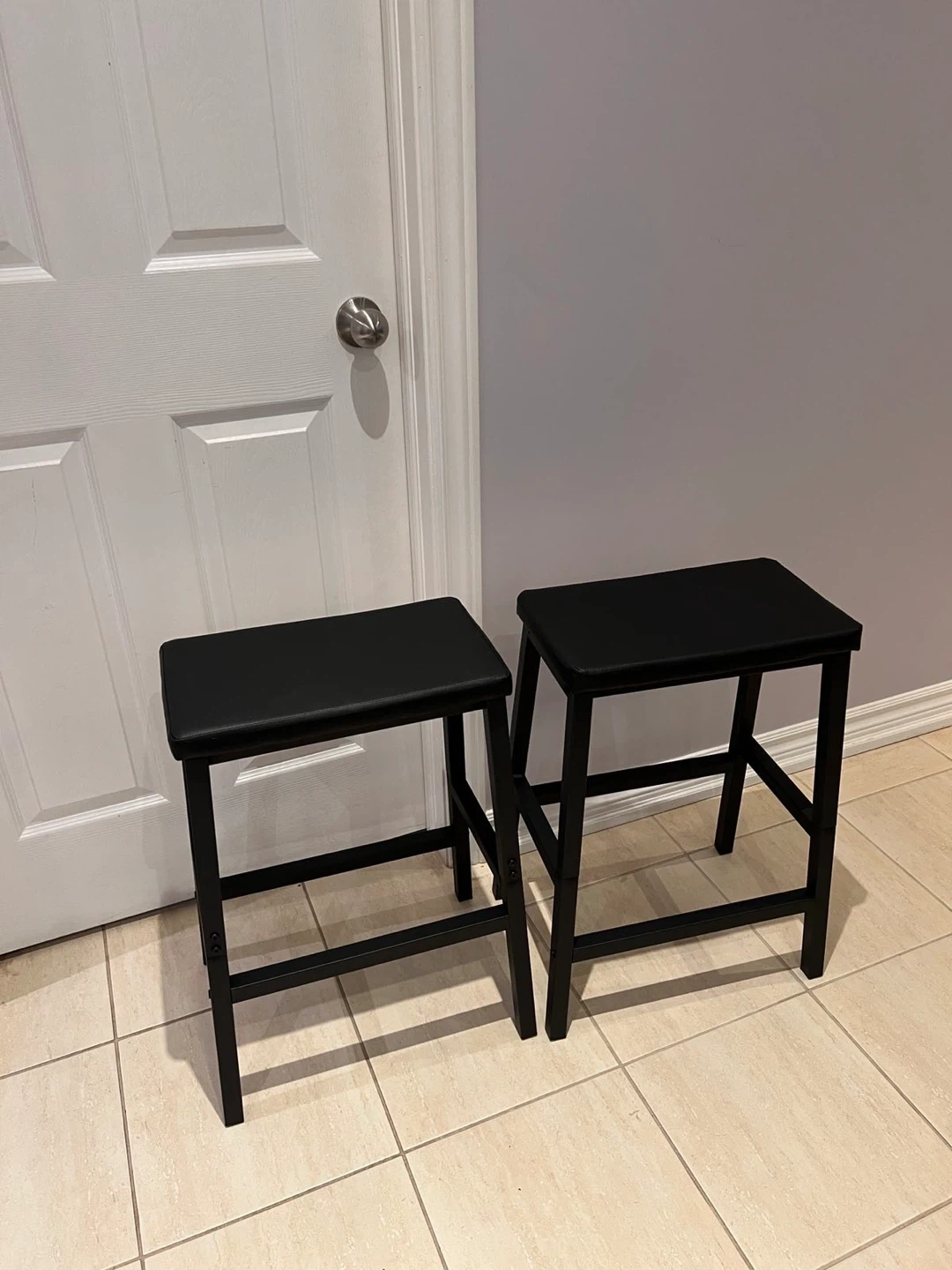 Selling a pair of black stools! They're in great shape and measure about 25 inches in height. Perfect for adding some extra seating to your space