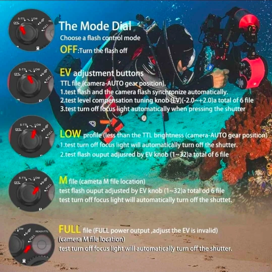 Remarkable Power and Coverage: With a Guide Number of 32 and an impressive underwater coverage angle of 100x100 degrees, the ST-100-Pro delivers stunning brightness and expansive illumination, allowing you to capture every detail of the underwater world