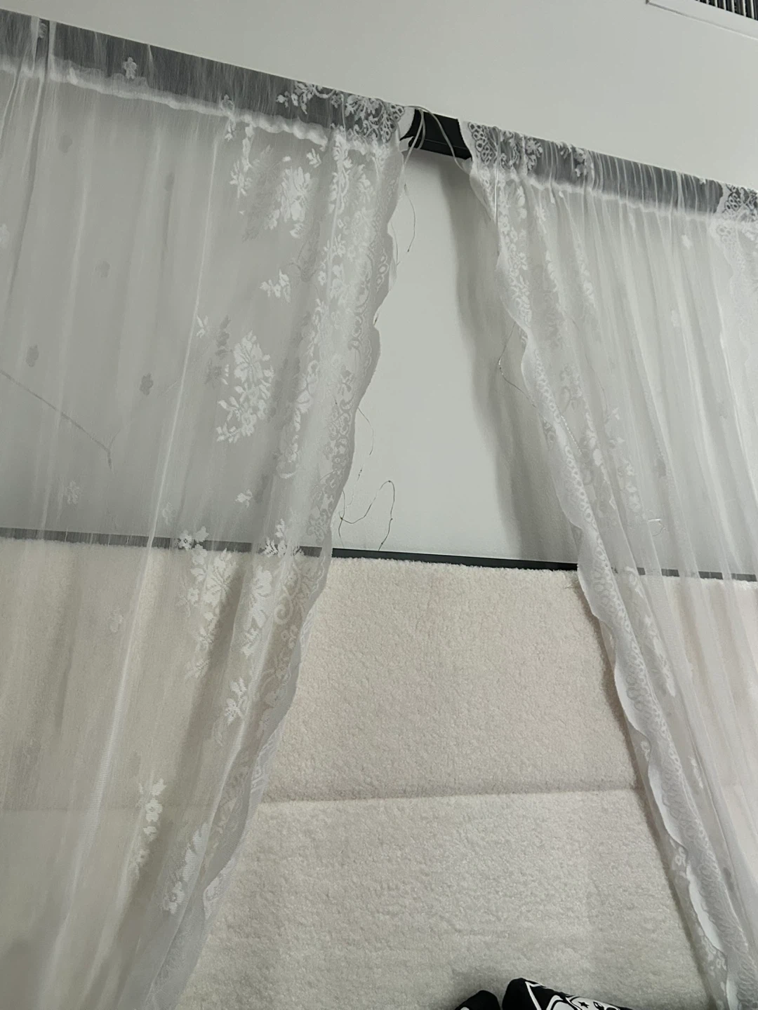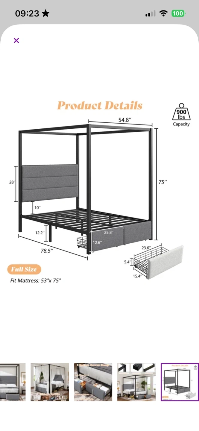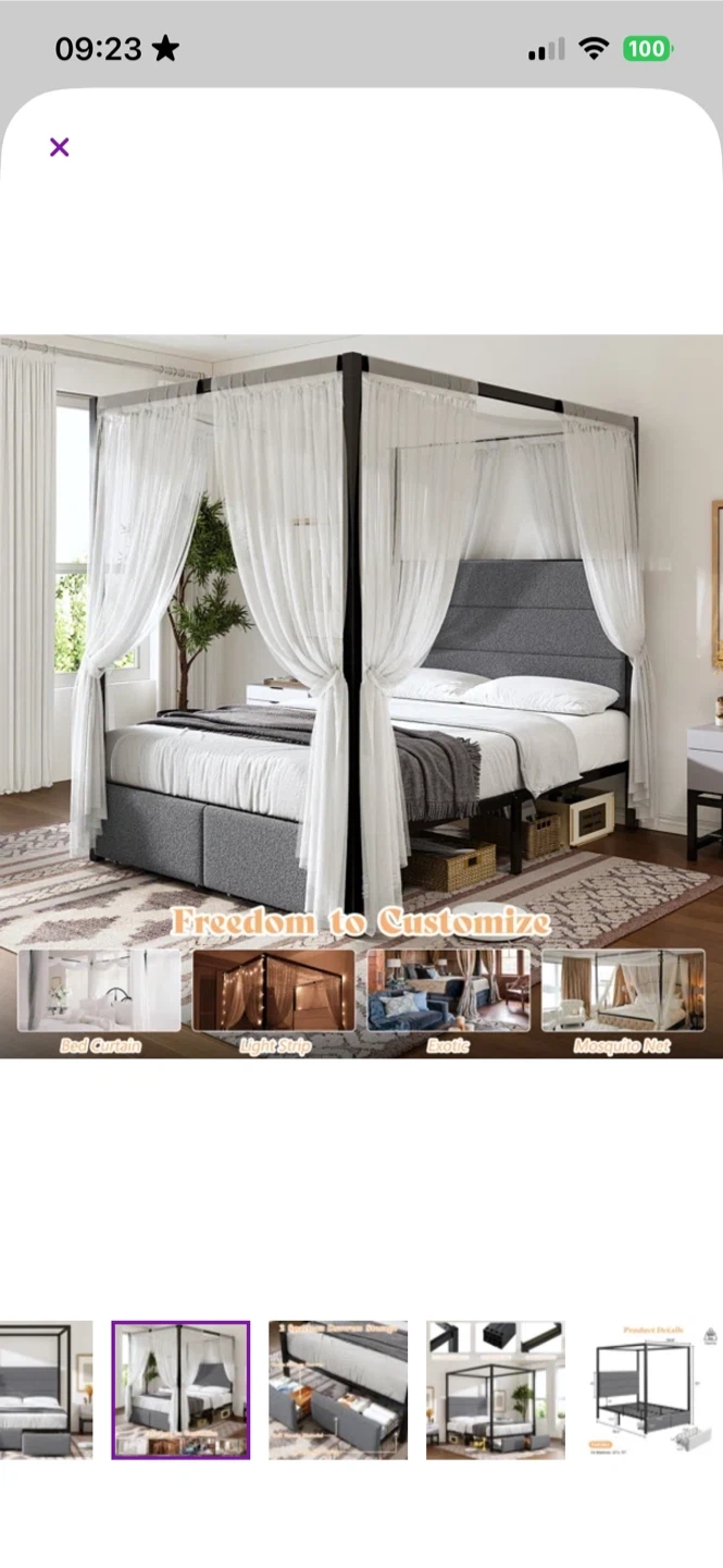 Selling a queen-size canopy bed frame. The frame is black the headboard is white as the last picture. Bought it in January but moved to a smaller place. I’ll un assemble it for pickup.