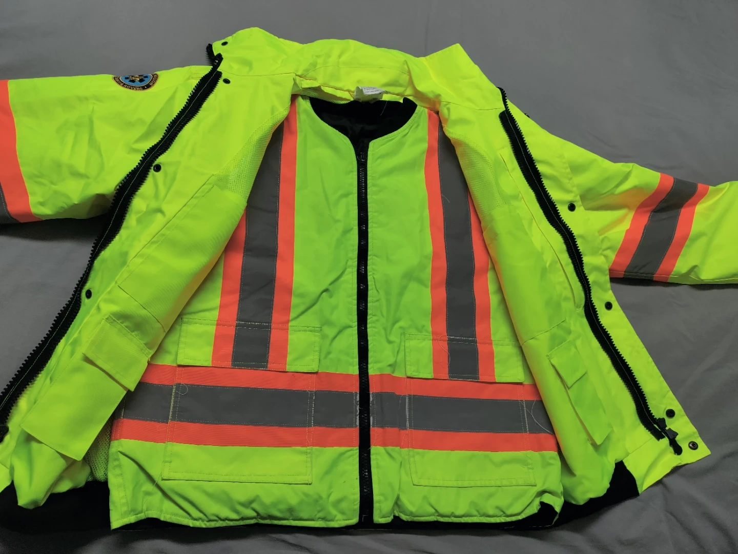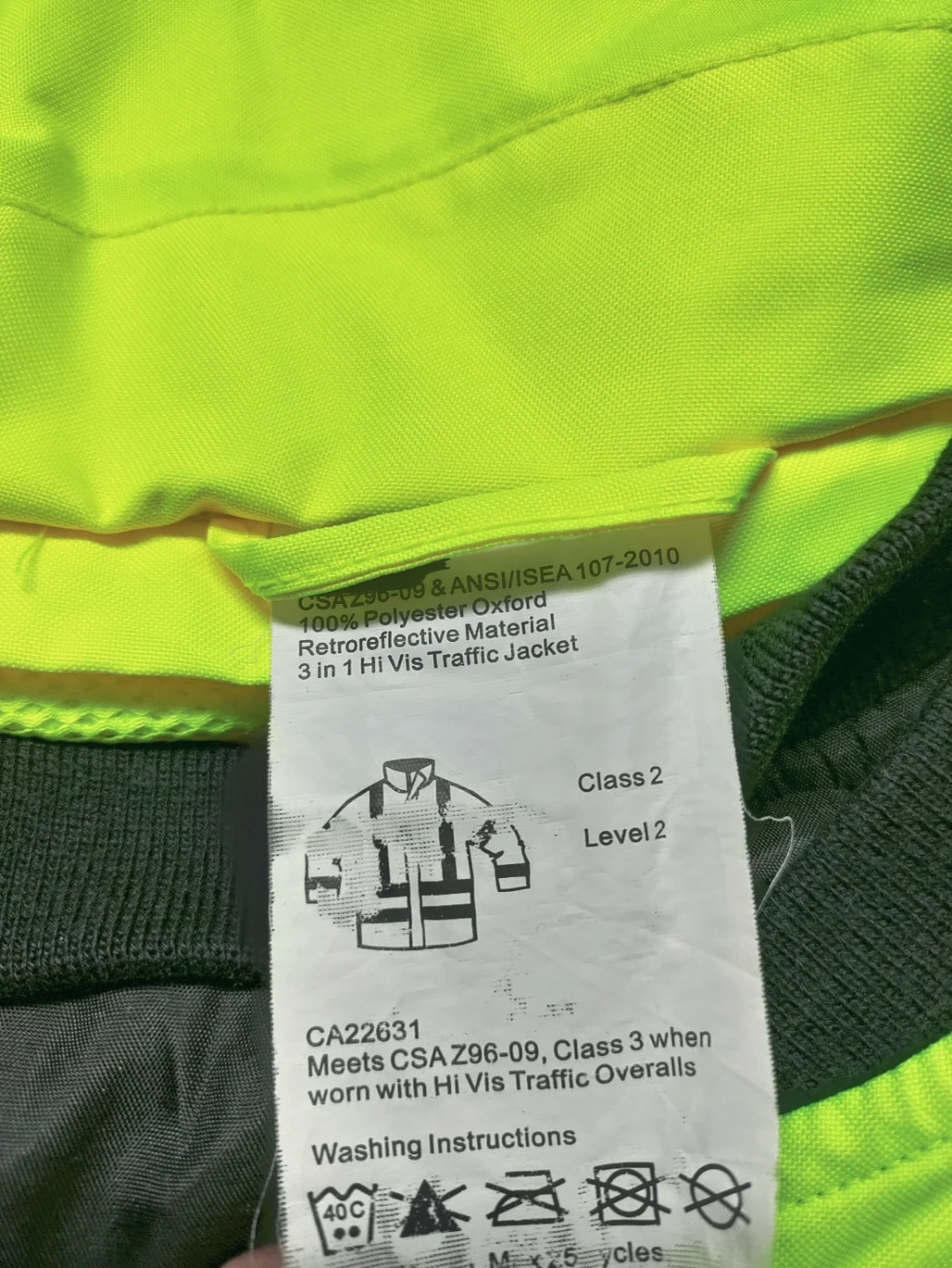Selling a hi-vis traffic jacket. It's made of 100% polyester Oxford retroreflective material. This is a 3-in-1 jacket, Class 2, Level 2.