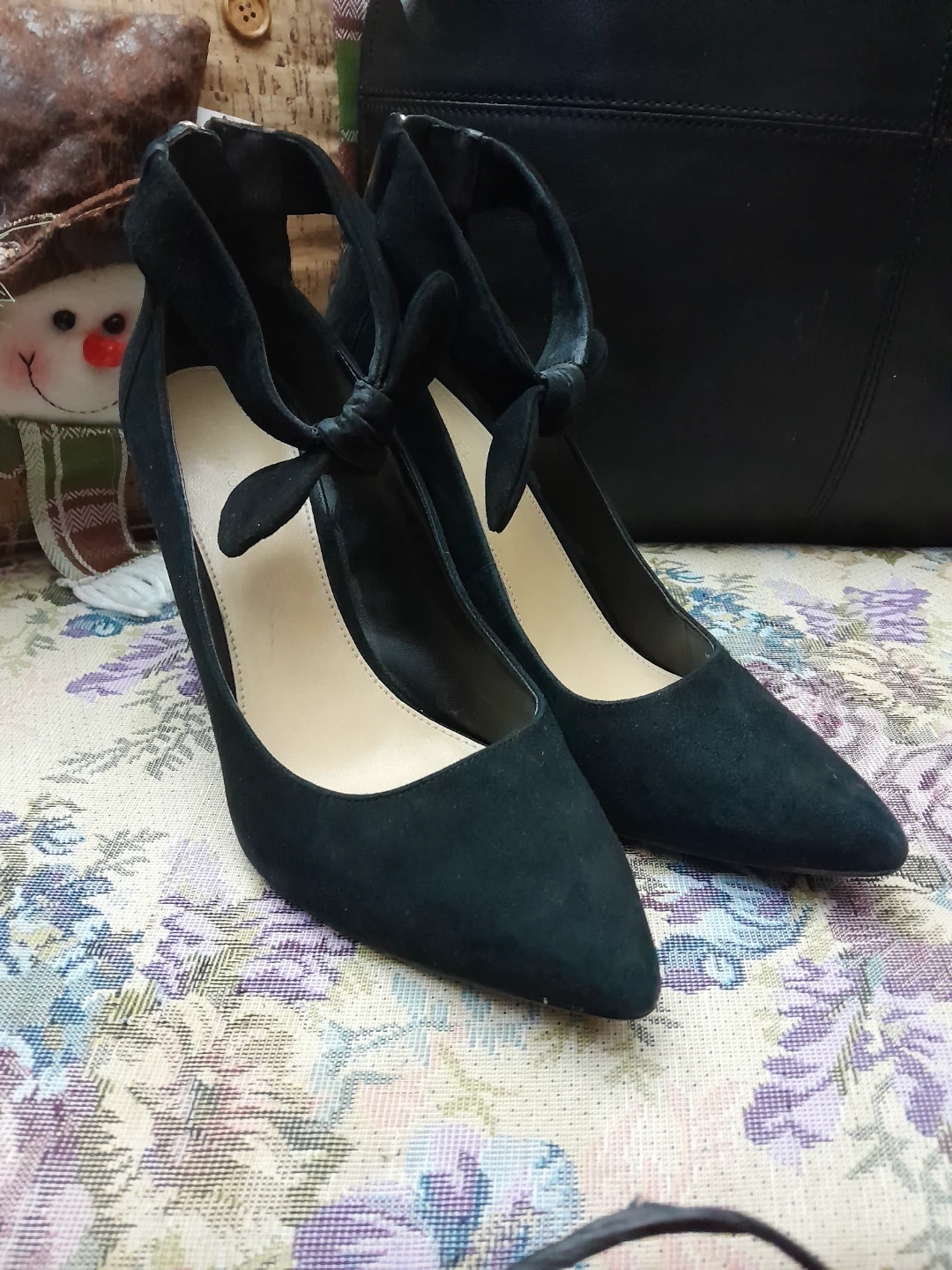 Selling a pair of Michael Kors black heels in size 8M. They have a stylish design with a tie detail and a stiletto heel. Great for dressing up any outfit! Its in good condtion except with a little bit of discoloration on one shoe. See pictures.