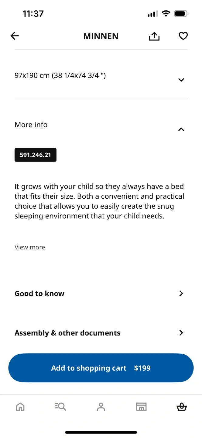 Selling an IKEA Minnen extendable bed frame in black. It grows with your child, ensuring they always have a bed that fits their size. A convenient and practical choice to create a snug sleeping environment.