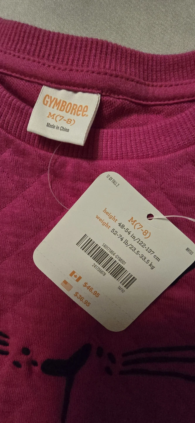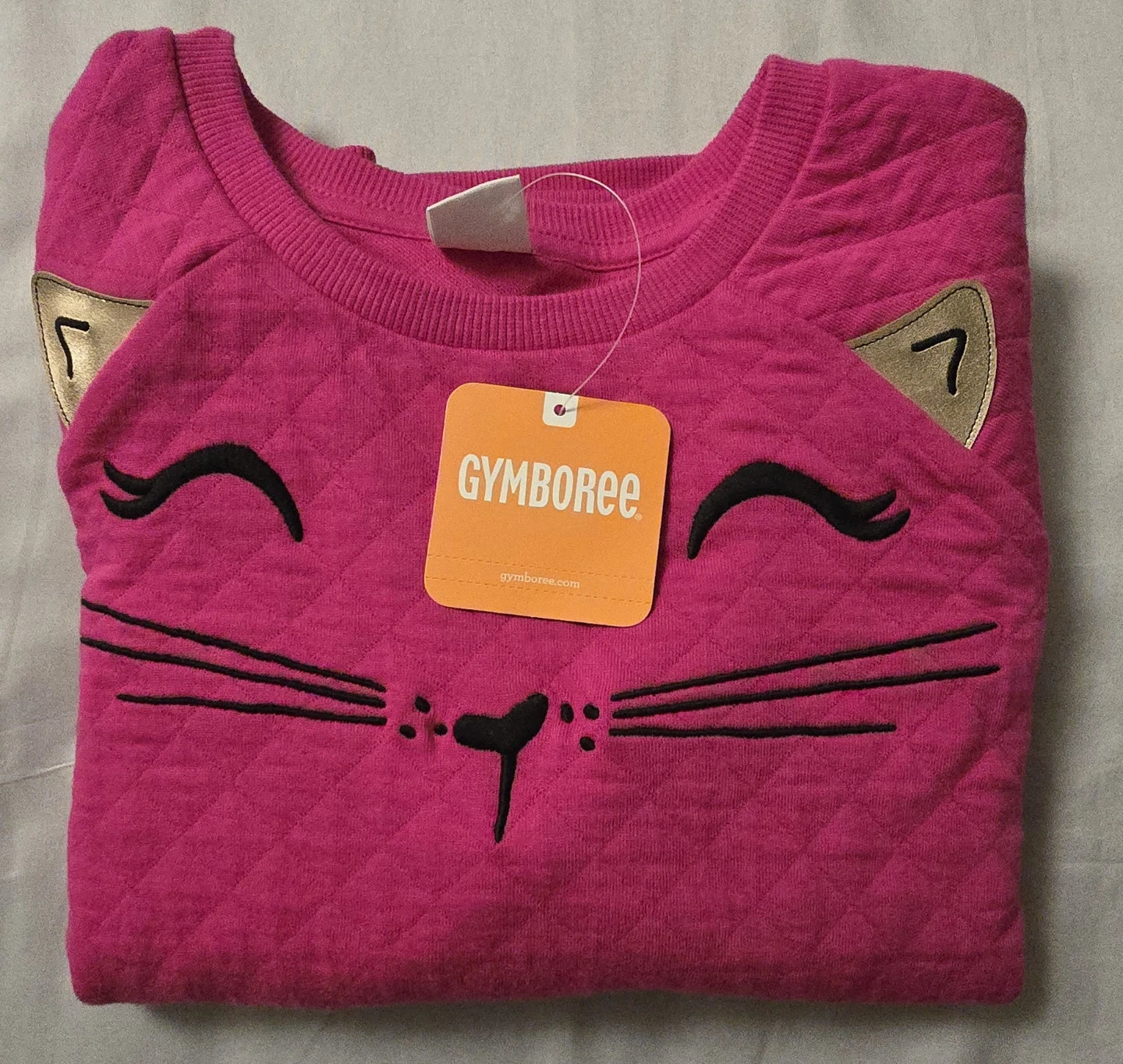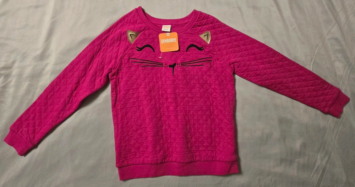 This adorable girl's pink Gymboree pullover is brand new with tags! It features a cute cat face design with quilted detailing, and is a size M (7-8). Perfect for your little one as a gift! Regular price was $46.95!