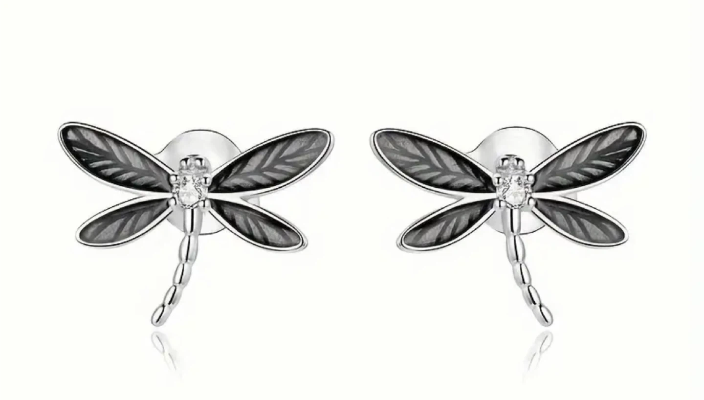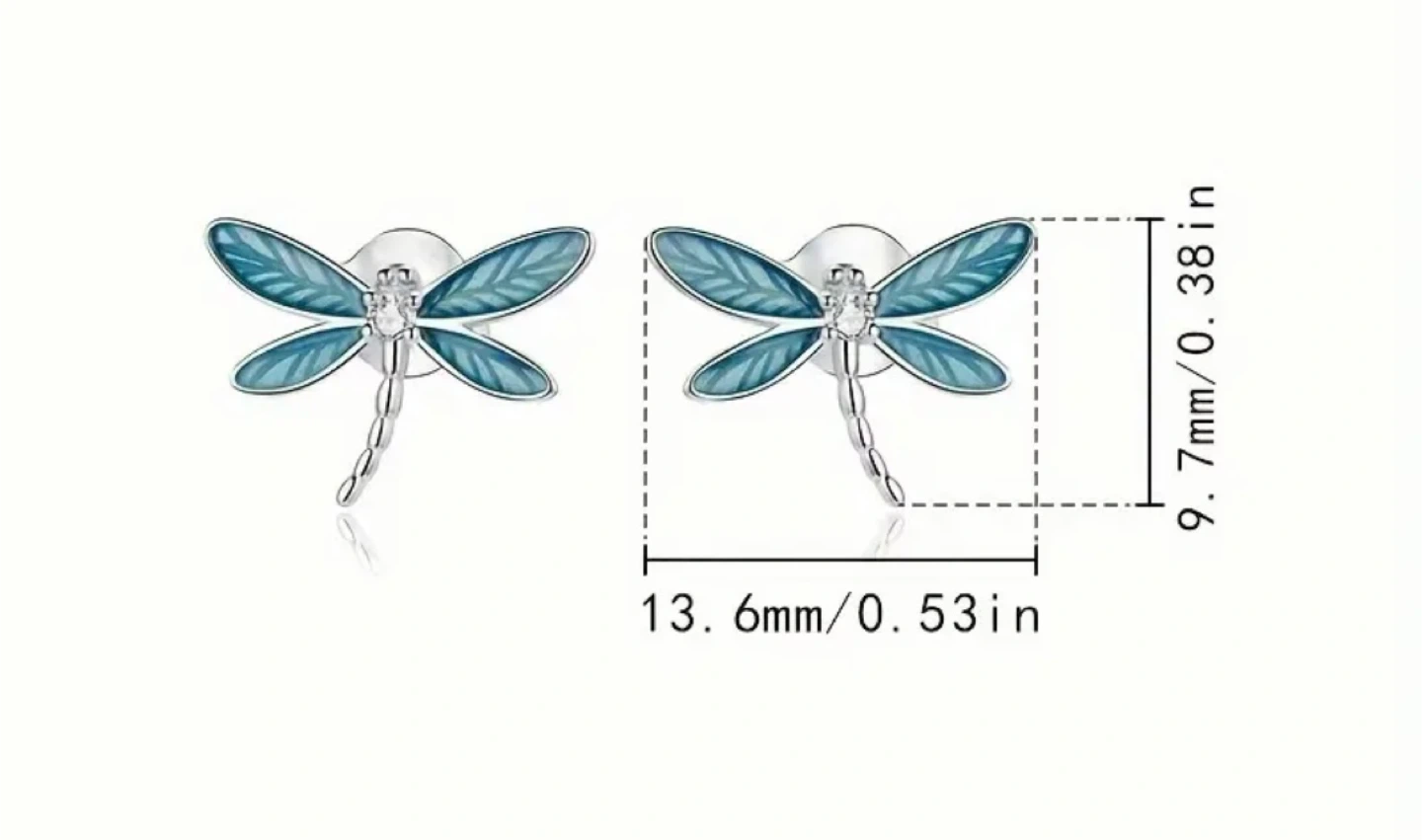 Cute dragonfly earrings! They come in a few different styles, including drop and stud earrings. The stud earrings are about 13.6mm wide and 9.7mm tall. Perfect for adding a bit of whimsy to your outfit