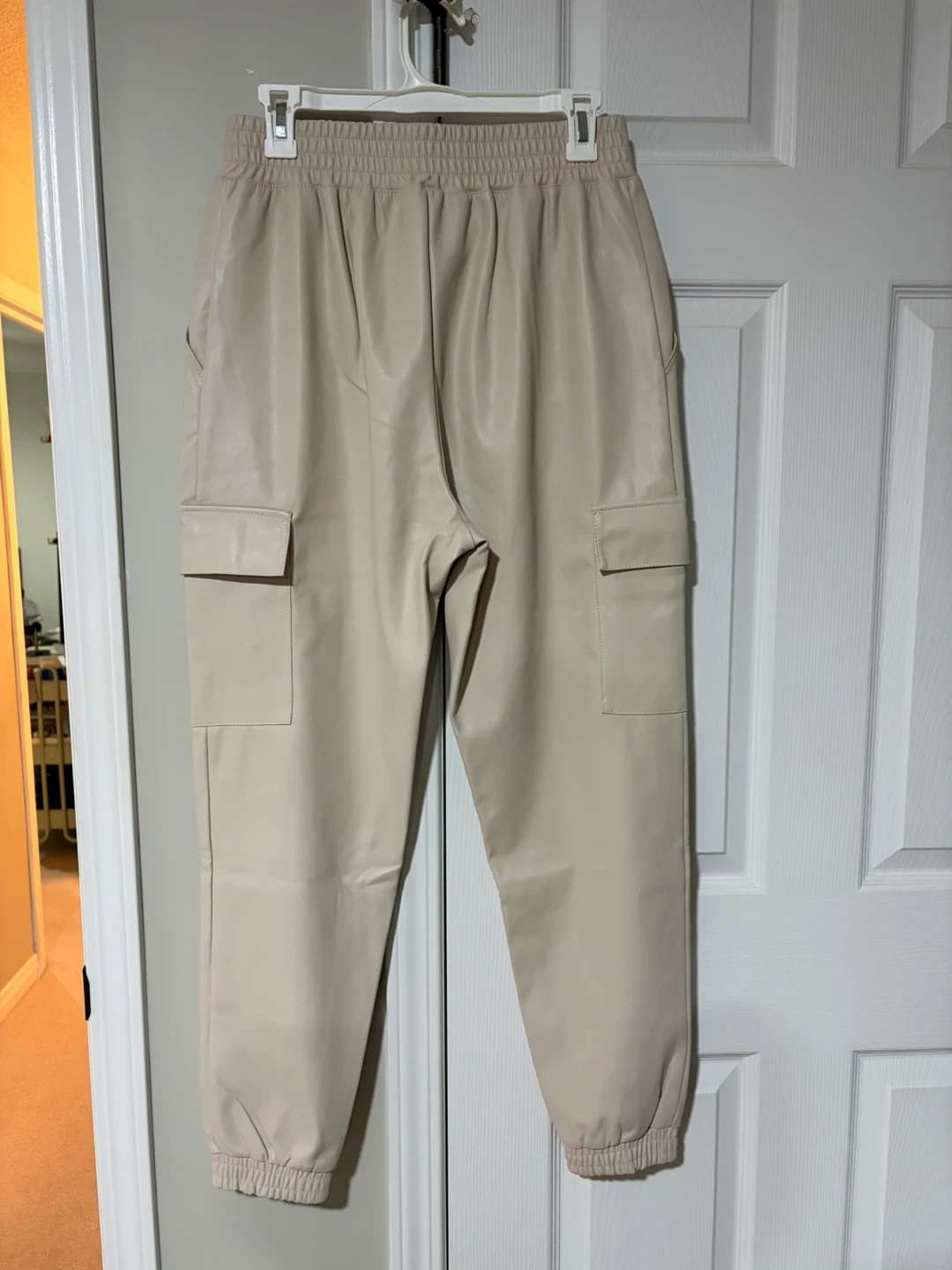 I have a pair of Bluenotes faux leather cargo joggers in a lovely beige colour! They're in great condition and ready for a new home. Perfect for adding a stylish edge to your casual outfits!