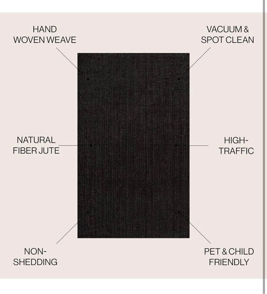 JONATHAN Y NRF102E-4 Pata Hand Woven Chunky Jute Black 4 ft. x 6 ft. Area Rug Rustic, Vintage, Industrial, Perfect for Bedroom, Living Room, Kitchen