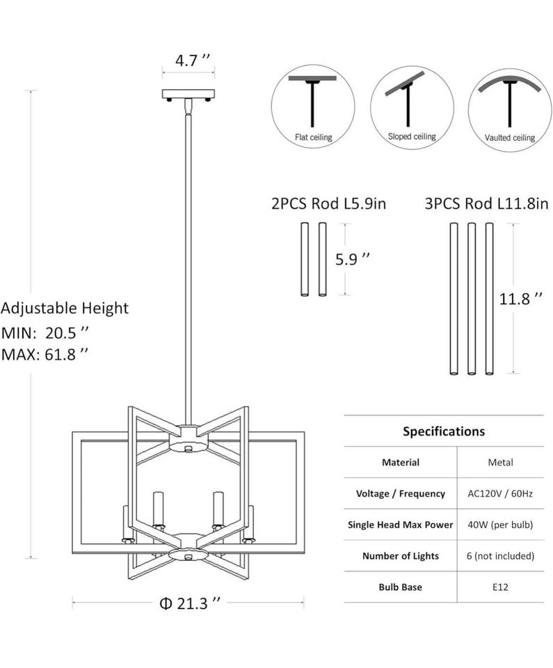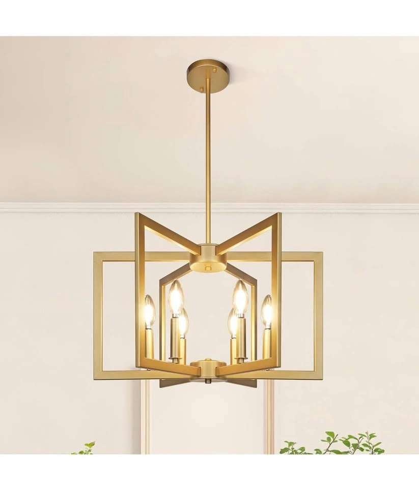 6-Light Gold Pendant Light, Modern Farmhouse Dining Room Light Fixtures Over Table, Industrial Metal Geometric Kitchen Chandelier for Entryway Hallway Foyer Bedroom