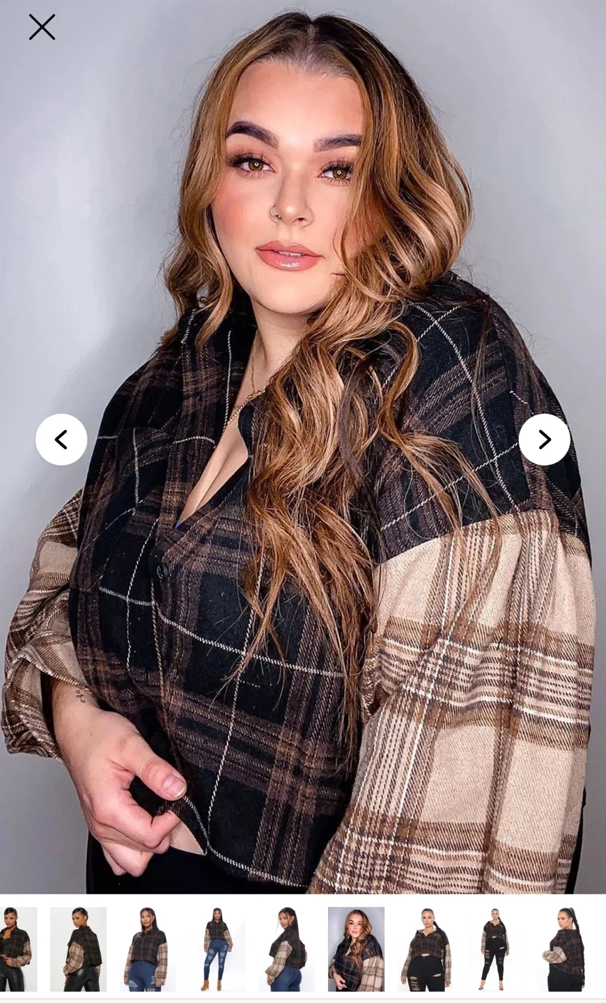 Here's a Fashion Nova cropped shirt with a plaid pattern. The shirt has two different plaid patterns, one on the body and a different pattern on the sleeves. It's a great addition to any wardrobe!