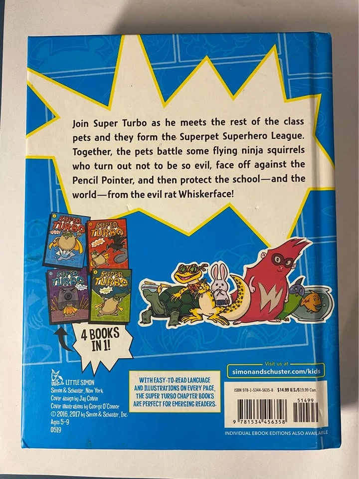 18Super Turbo follows a superhero hamster and other class pets who save the school from squirrel ninjas and evil pencil sharpeners. Great book for children.