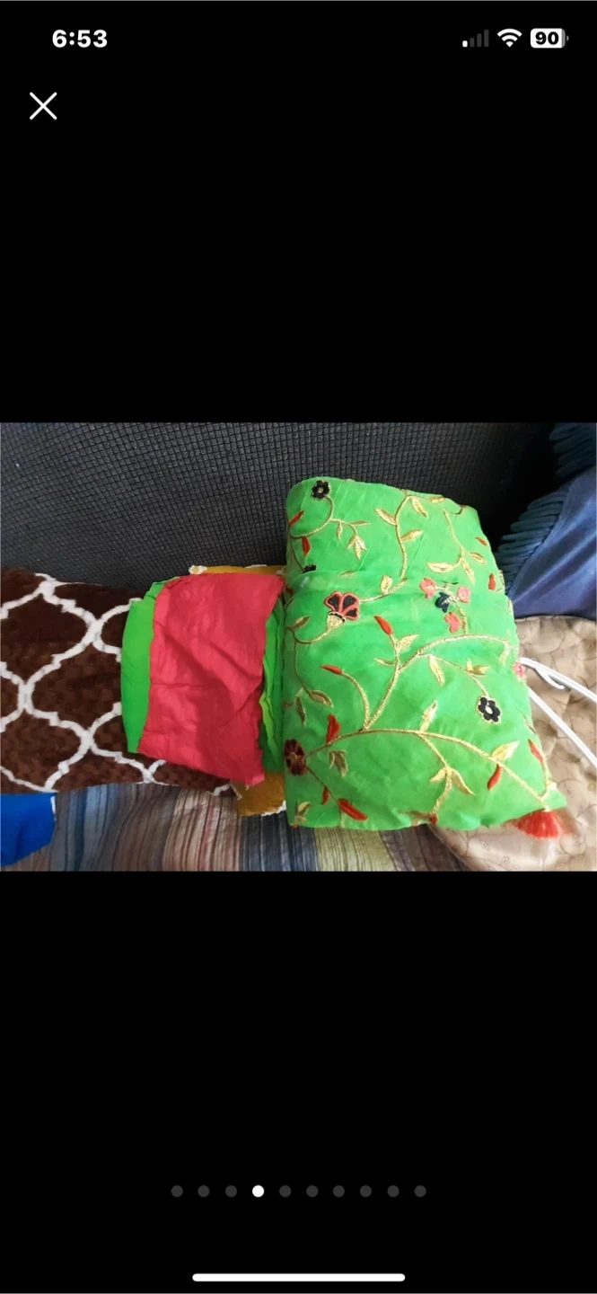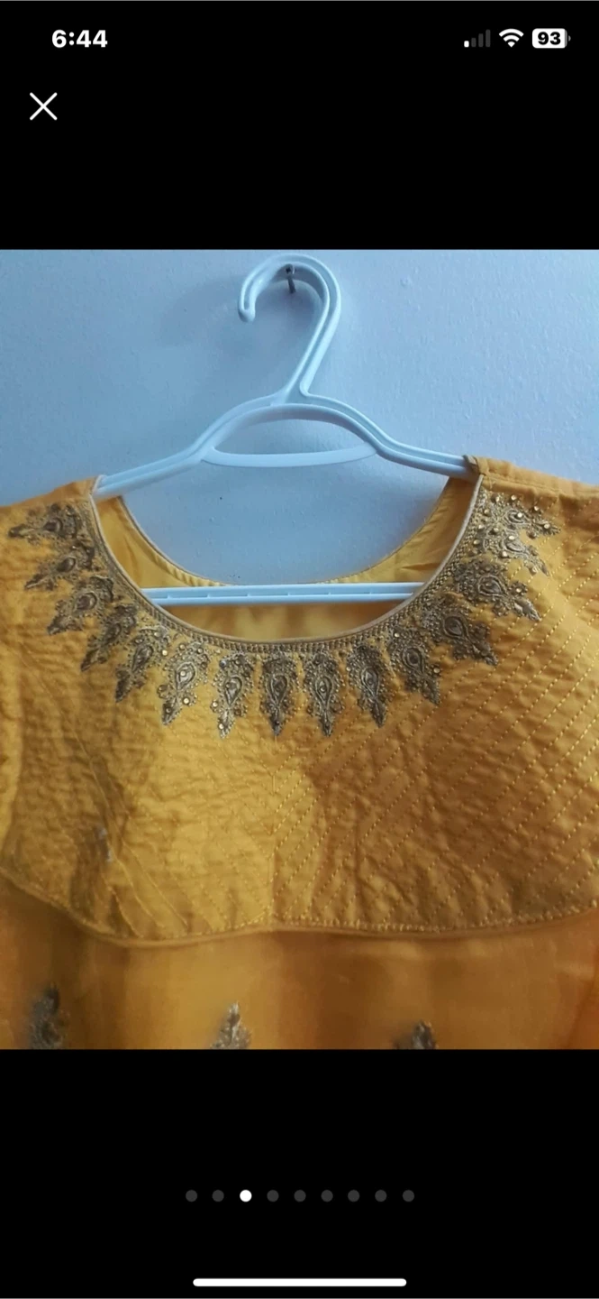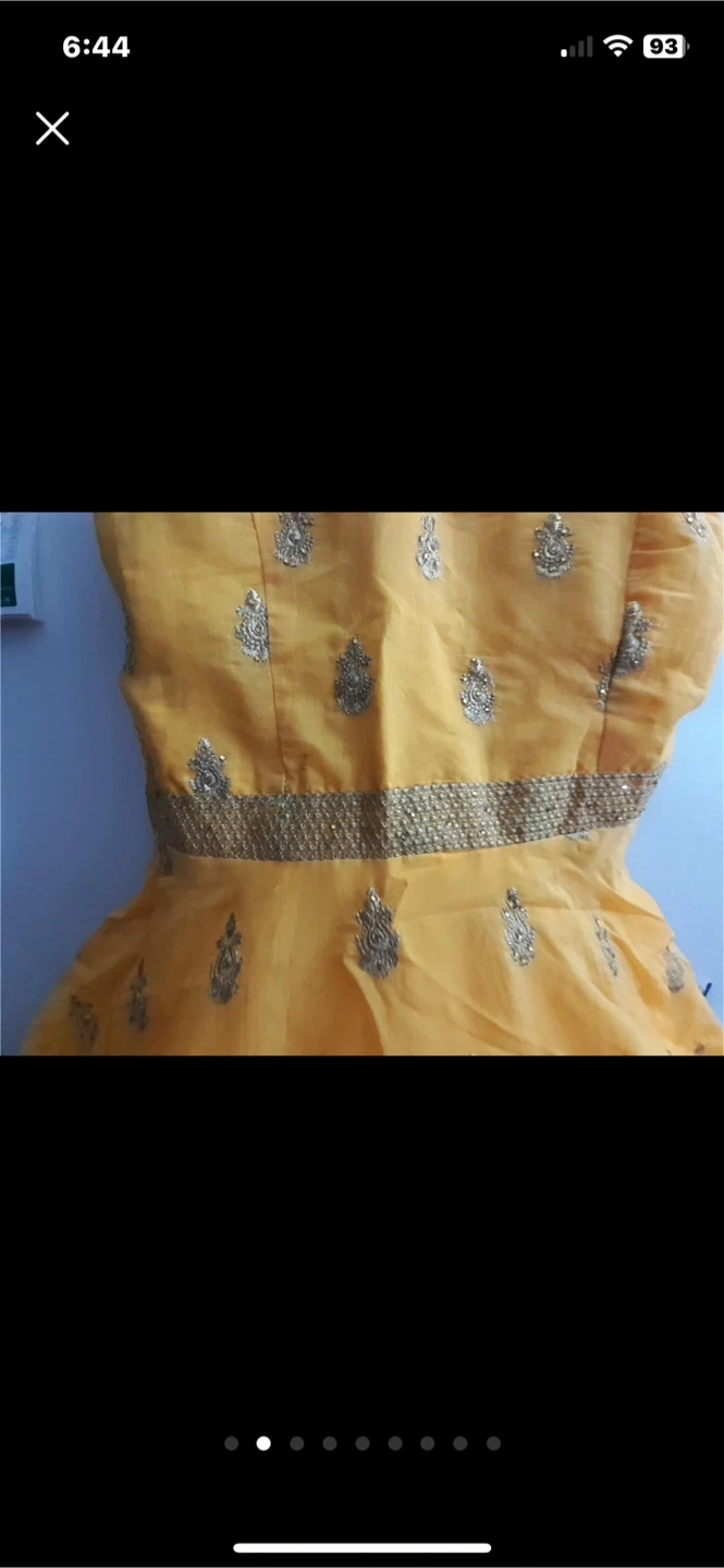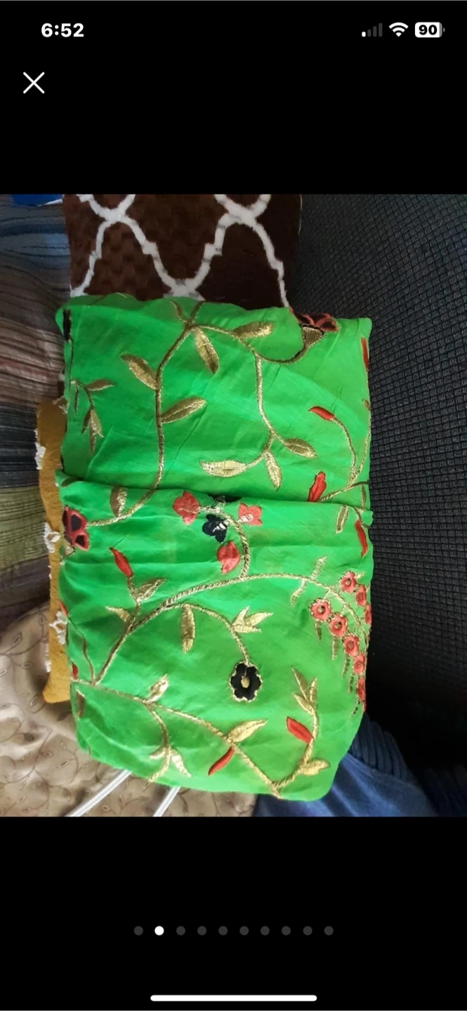 This is a beautiful green Anarkali dress with intricate embroidery. It includes a matching pink dupatta. Perfect for special occasions! Txt for pricing and others