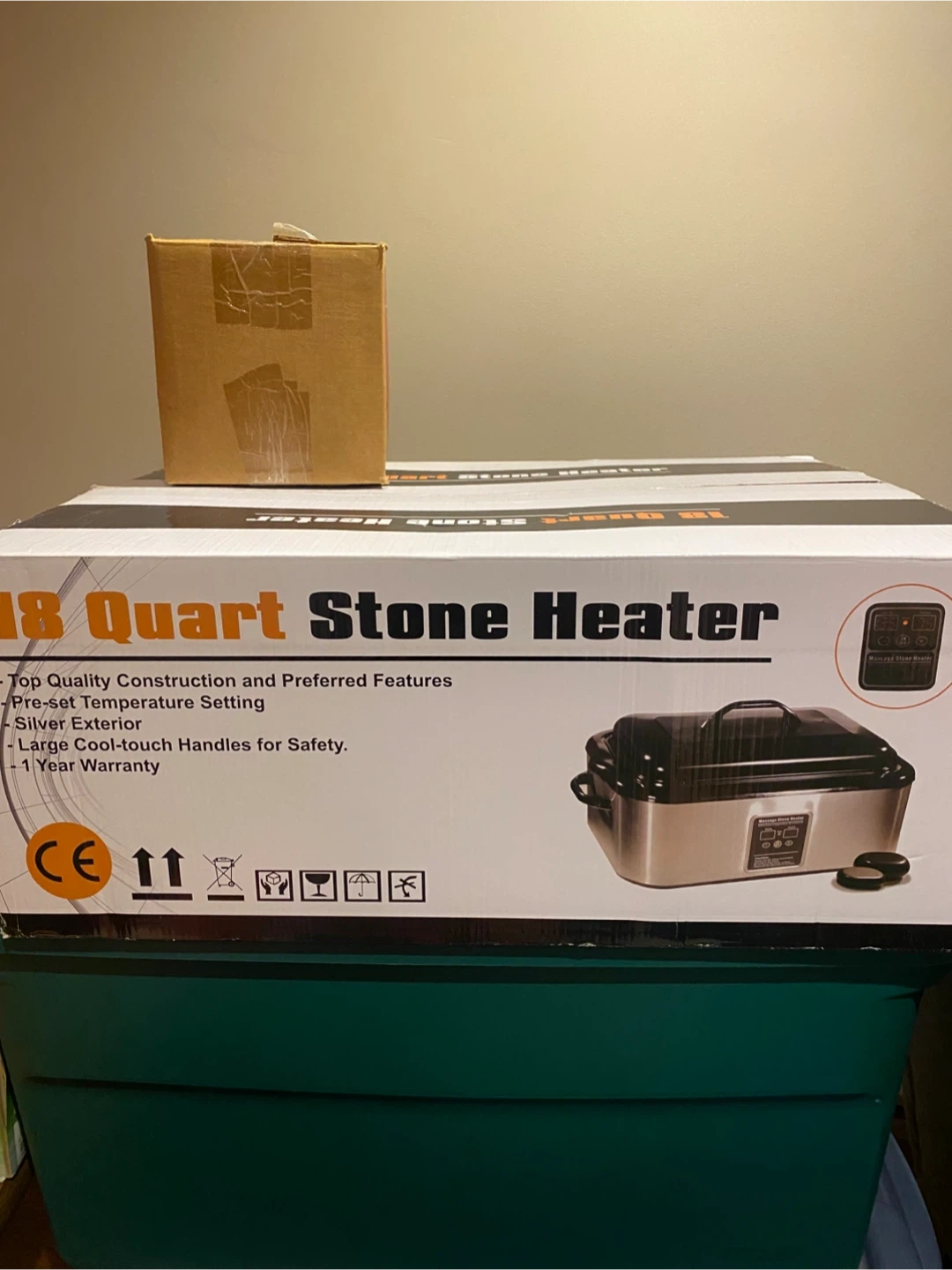 Selling an 18 Quart Stone Heater from The Stone Massage Company! It features top quality construction and preferred features, including a pre-set temperature setting and a sleek silver exterior. The large cool-touch handles ensure safety during use. The box is included!