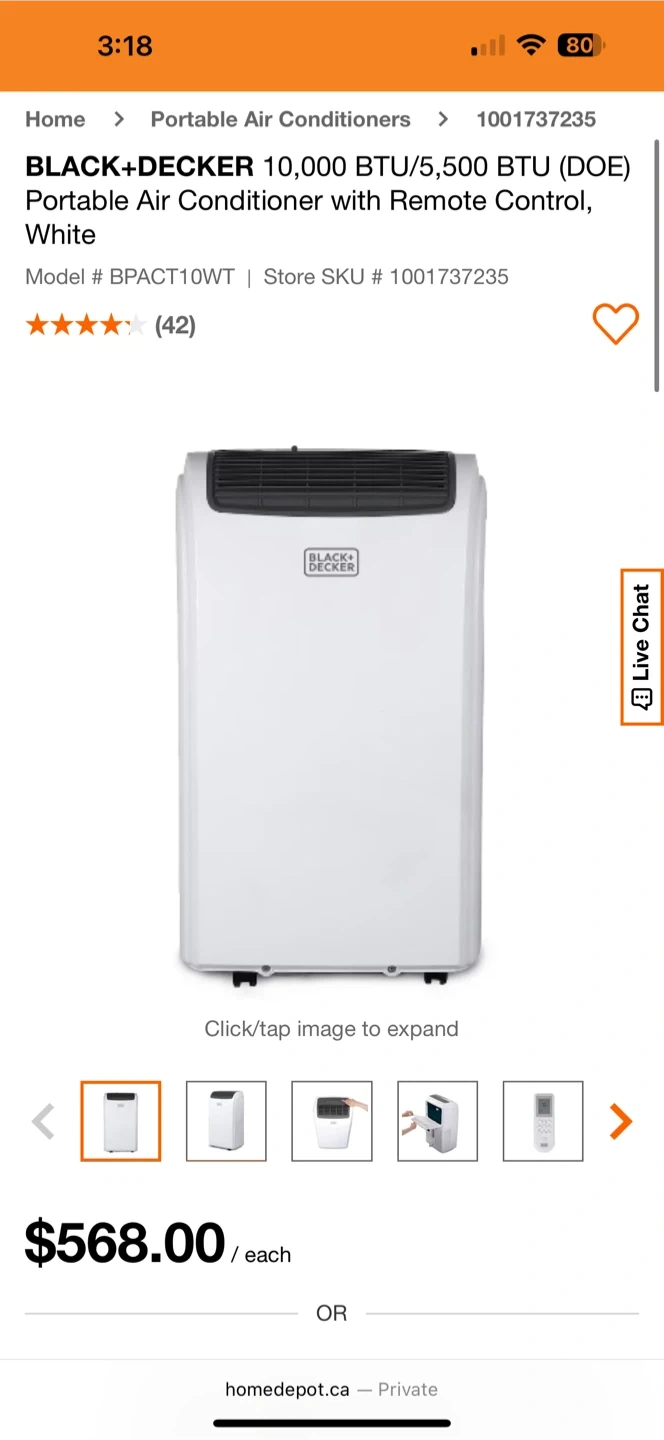 Selling a BLACK+DECKER 10,000 BTU/5,500 BTU (DOE) Portable Air Conditioner in white! This unit comes with a remote control. Originally bought for $568.00.