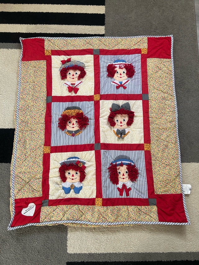 Buy & SellVintage Raggedy Ann and Andy Baby QuiltVintage Raggedy Ann and Andy Baby Quilt$30Original Raggedy Ann and Andy Quilt. Never used. Condition: Used - Like new.ConditionLike newWHERE TO MEETCheck LocationView MapSELLERJeremy BarlowShoreacres270 reviews0 chats·0 favorites·7 viewsSEND CHAT TO SELLERHi Jeremy Barlow! I’m interested in your listing.Hi Jeremy Barlow! I’m interested in your listing.Get the Karrot app to chatSign In to chat