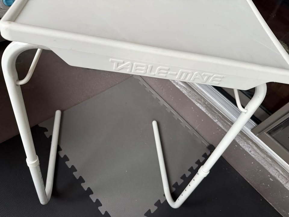 Table-Mate the adjustable table that slides to you! Table-Mate as seen on TV is the perfect portable table, adjusts to six different heights and 3 angles! Features a built-in, adjustable cup holder.