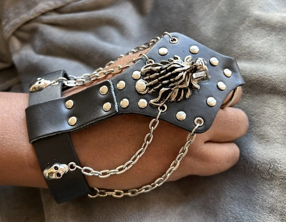 Charm Gothic Skeleton Hand Bracelet for Men and Women. Skull Knuckle Bracelet Full Hand Skeleton Bracelet Rings for Halloween, cosplay etc.