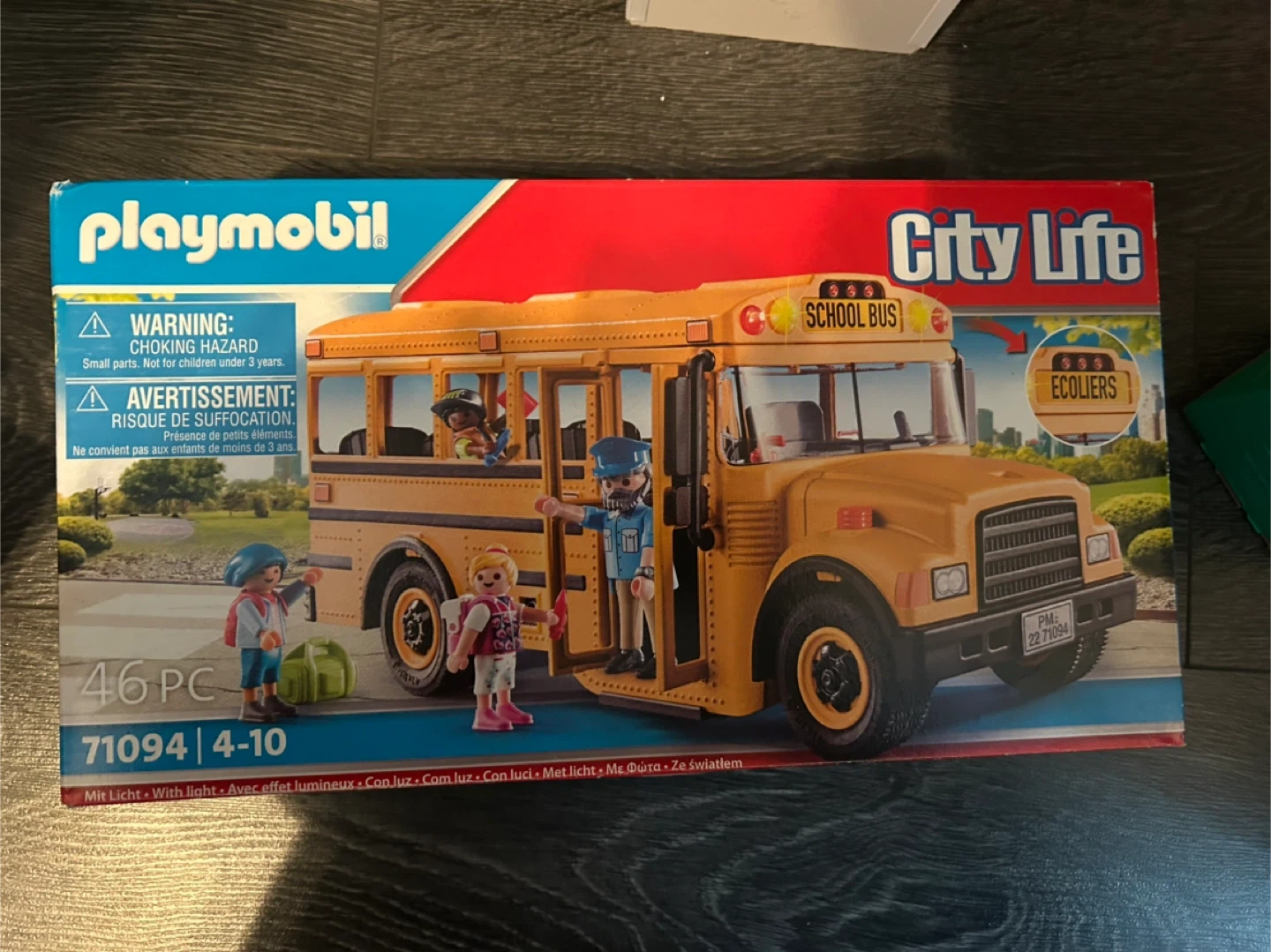 Selling a Playmobil City Life School Bus set! It's suitable for kids aged 4 to 10. This set includes 46 pieces for creating fun school bus adventures. The bus features realistic details and comes with figures and accessories to enhance imaginative play