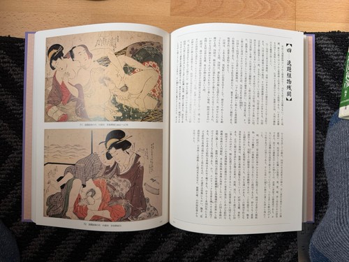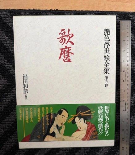 Enshoku Ukiyo-e Zenshu, or "Complete Collection of Erotic Ukiyo-e". The book is a collection of shunga, a type of Japanese erotic art that was popular during the Edo period. Shunga are a genre of ukiyo-e, which are woodblock prints or paintings. The title on the book cover highlights the works of Utamaro. The book was edited by Kazuhiko Fukuda and published by Kawade Shobo Shinsha.