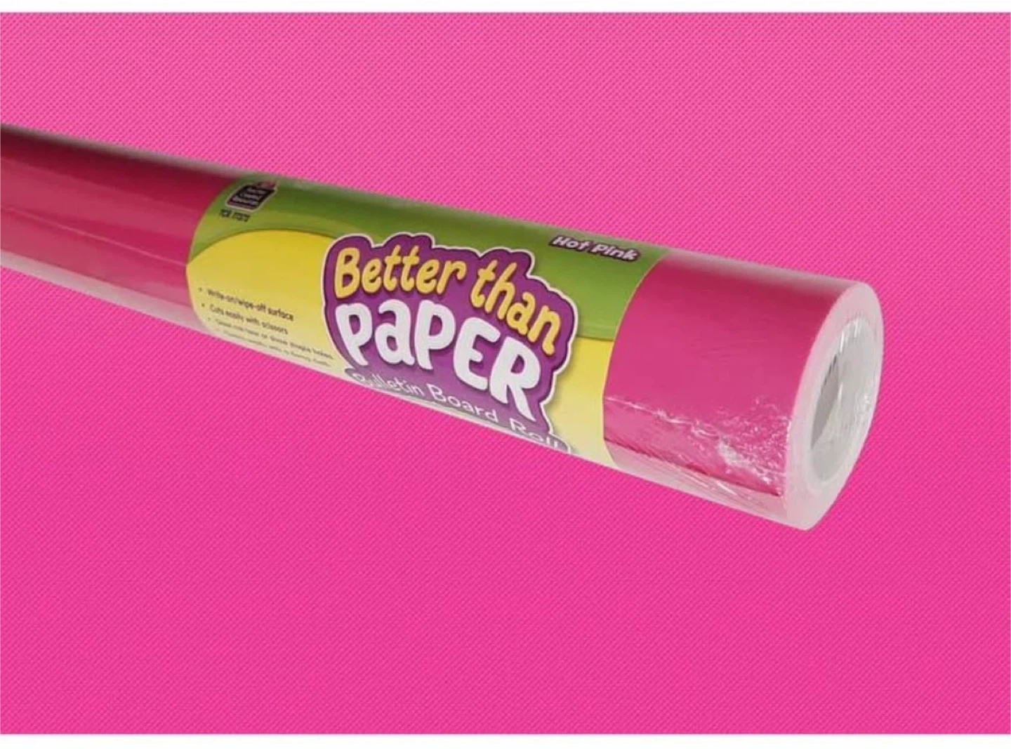 Selling a roll of Better Than Paper bulletin board material in hot pink! It's great for creating a vibrant and easy-to-clean backdrop for your classroom or workspace. Cuts easily with scissors and is write-on/wipe-off surface. This is a 4ft by 12ft roll of fadeless paper. I never used this product and it’s still in its original packaging.