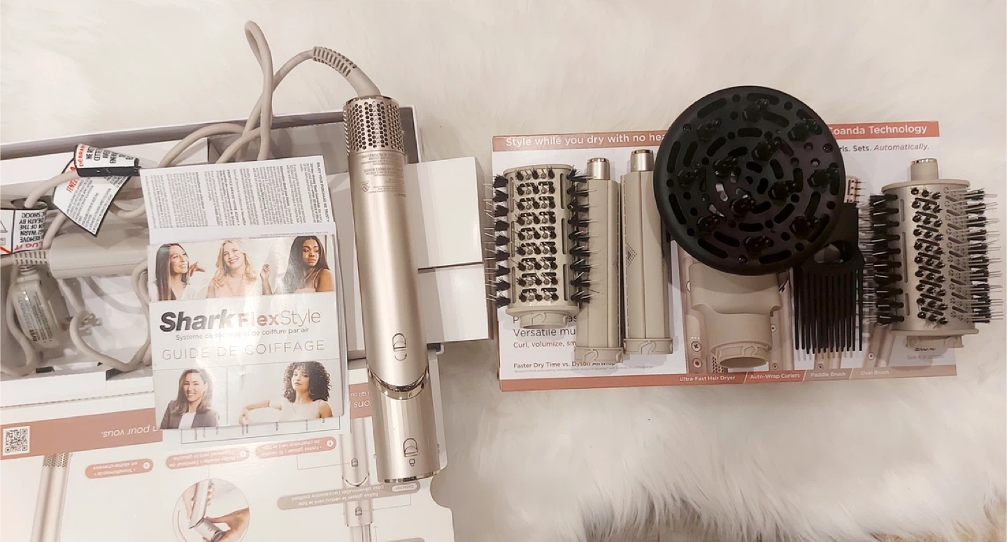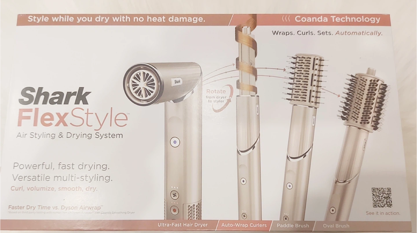 Selling a new Shark FlexStyle Air Styling & Drying System. It includes attachments like the Ultra-Fast Hair Dryer, Auto-Wrap Curlers, Paddle Brush, and Oval Brush. It has been only used twice.
