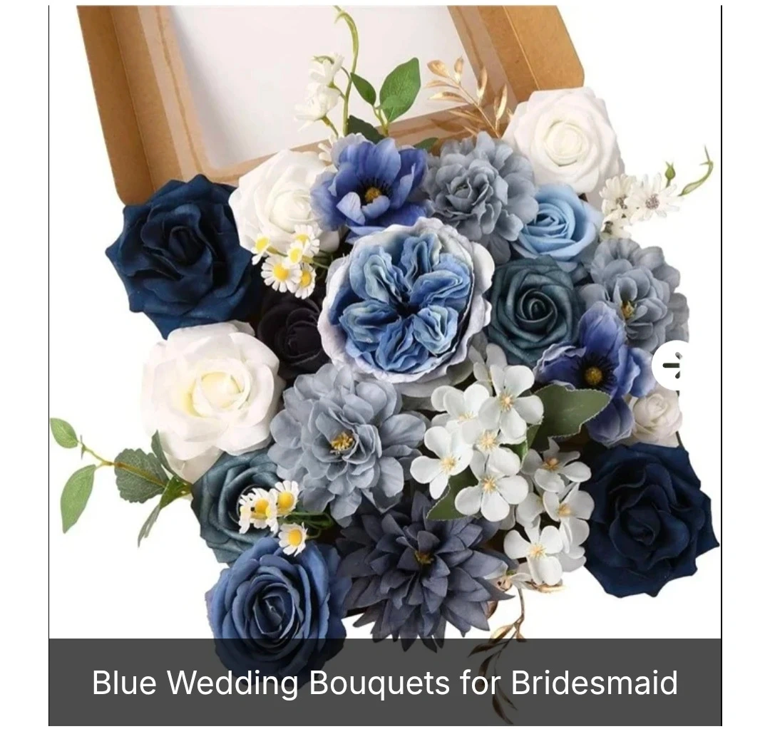 - Add a touch of elegance to your wedding with the Serwalin Blue Wedding Bouquets for Bridesmaid, Set of 4. These beautifully crafted artificial bouquets feature a stunning blend of blue and white flowers, creating a romantic and timeless look that perfectly complements any wedding theme. Each bouquet is delicately arranged with lifelike blooms and greenery, offering the beauty of fresh flowers without the worry of wilting. Ideal for bridesmaids, bridal showers, or as wedding décor, these bouquets are lightweight, easy to hold, and make for gorgeous keepsakes after the big day.