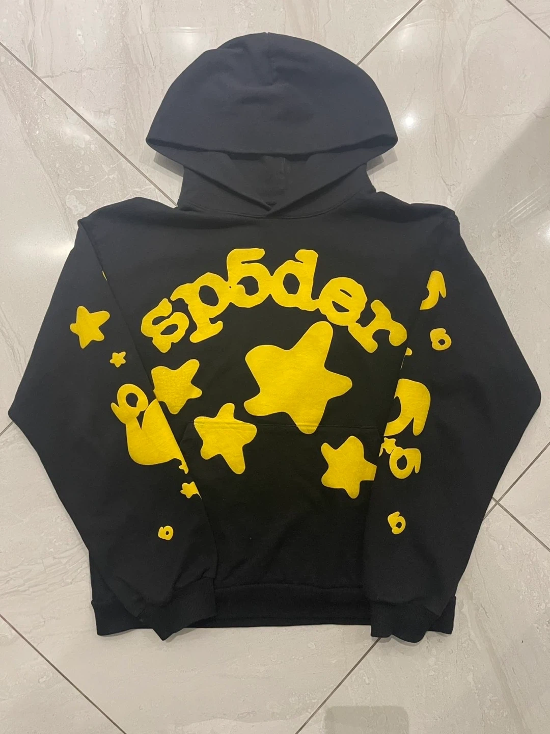 Selling a Sp5der hoodie in size medium! It's black with yellow stars and lettering. The hoodie is in great condition and ready for a new home this is an ‼️authentic hoodie‼️