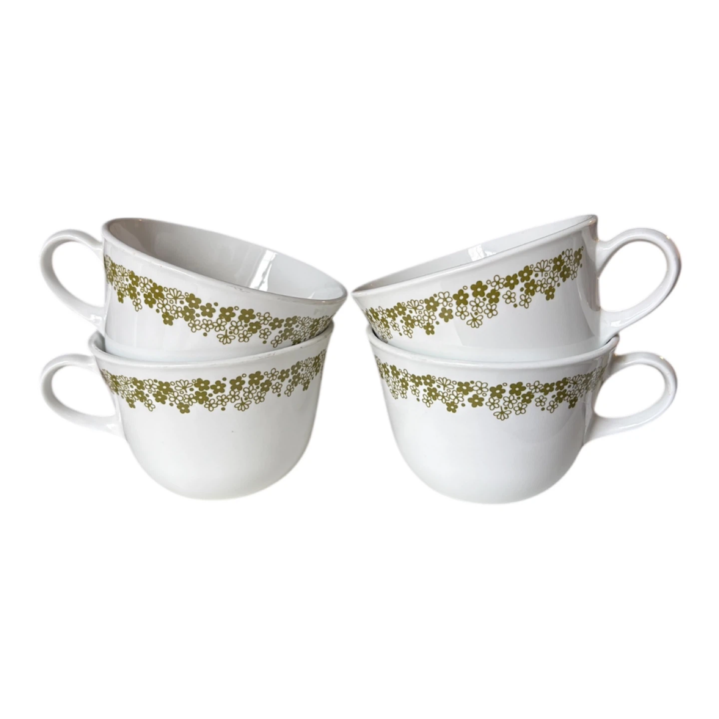 Corelle White Green Crazy Daisy Floral Coffee Tea Cup Mugs Set of 4 Made in USA
