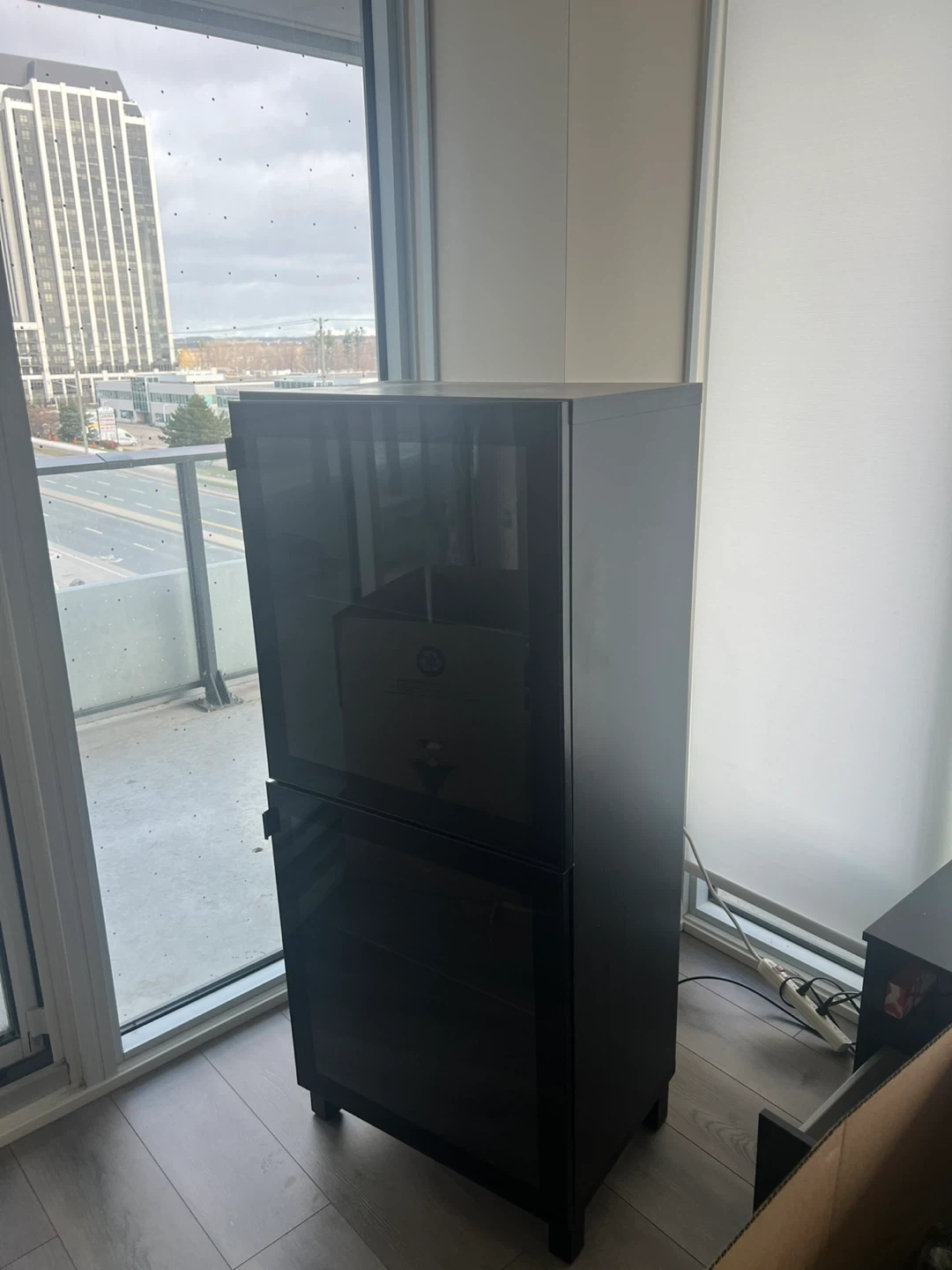 Selling a sleek black display cabinet! It's in great shape and perfect for showcasing your favourite items. The cabinet features glass doors and shelves, adding a touch of elegance to any room. It's a stylish and functional piece that will complement your home decor