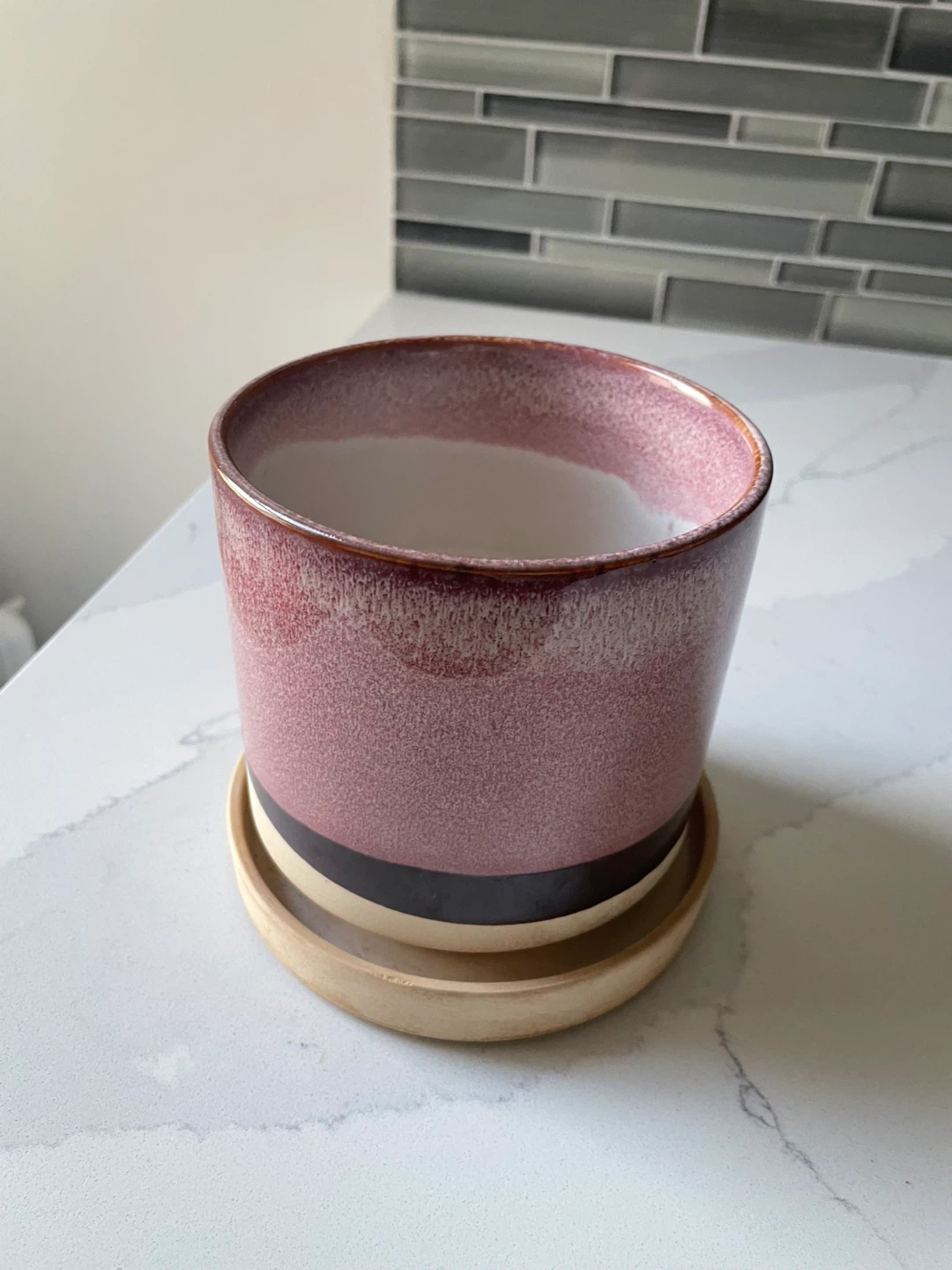 Selling a cute mauve ceramic planter that comes with its own saucer! Perfect for adding a touch of greenery to your space 🪴