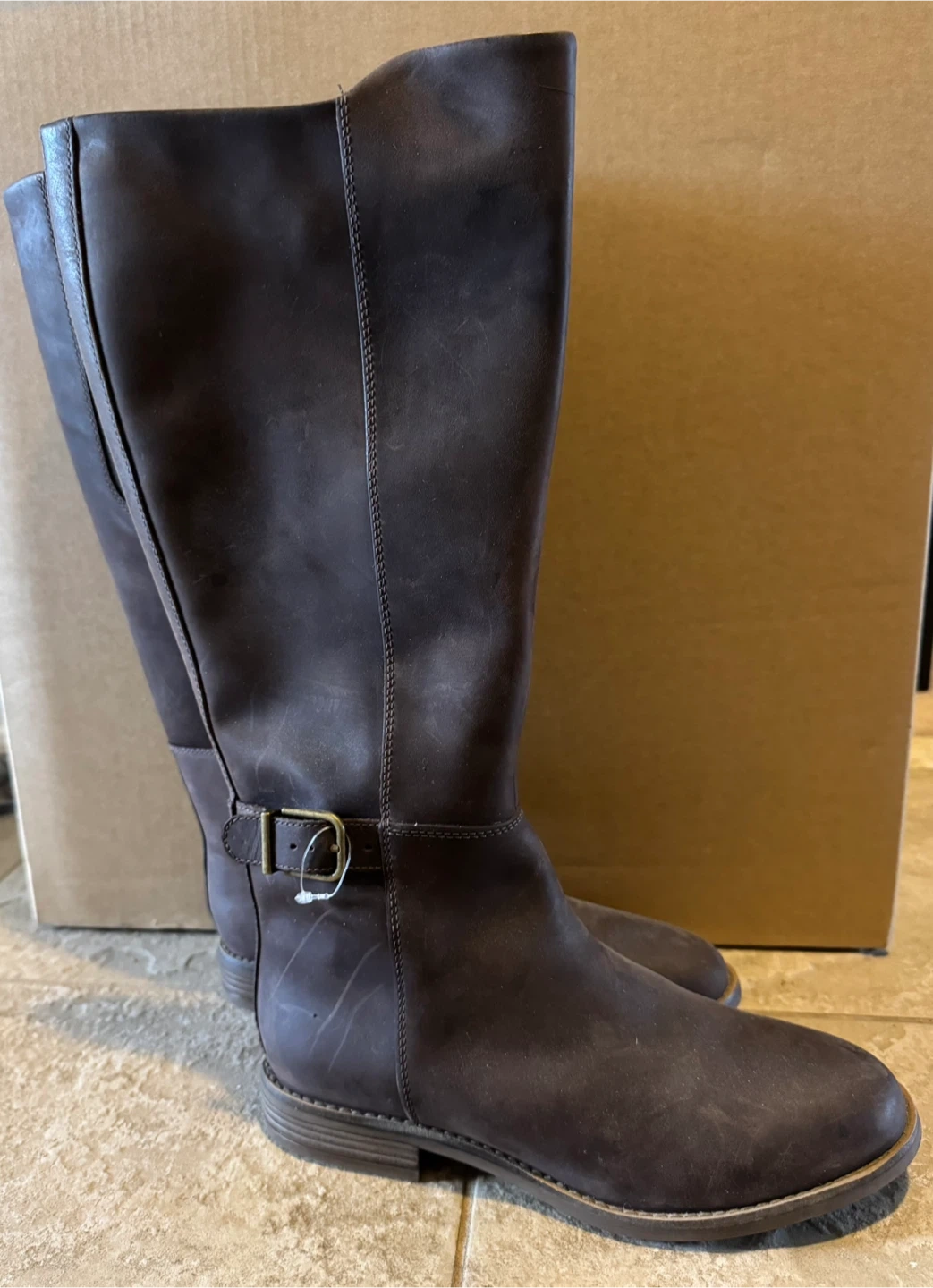 BNWT: Selling a pair of Clarks riding boots in a supple brown leather, size 8.5 . Perfect for adding a touch of style to your wardrobe. These are brand new, never worn.