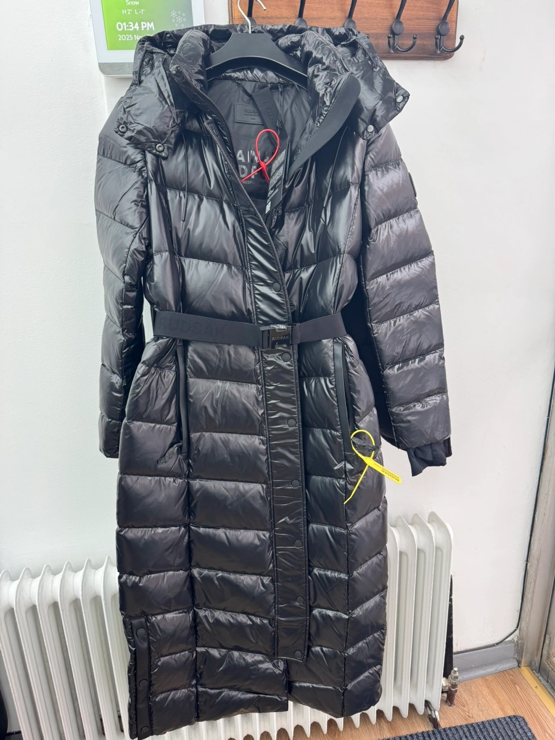 Selling a Rudsak black down puffer coat! It's in great condition and perfect for the cold Canadian winter. The coat features a stylish belt and a sleek, shiny finish. This is a stylish and functional outerwear piece!