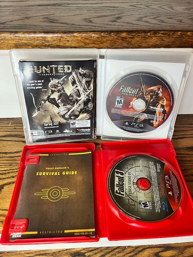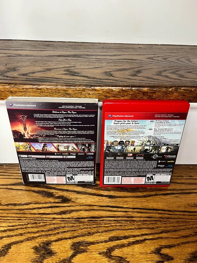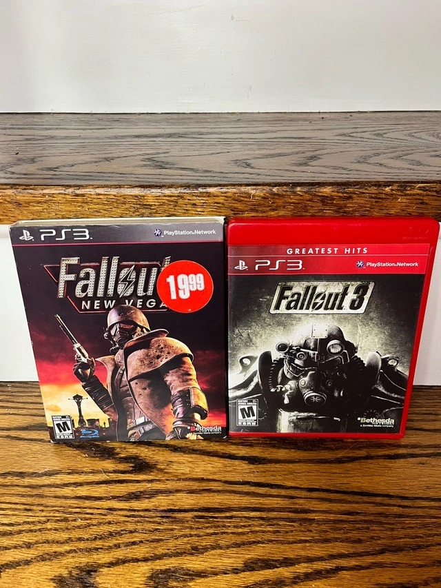 Relive the post-apocalyptic adventures with this dynamic duo! Available here are the Fallout 3 and Fallout New Vegas games for the PlayStation 3. Both games are complete with original cases and booklets and are in good condition, ready for hours of gameplay. * Fallout 3: Experience the Capital Wasteland with the Greatest Hits edition. * Fallout New Vegas: Venture into the Mojave Desert and make your mark. 25 for both Check out my other listings for more cool stuff!