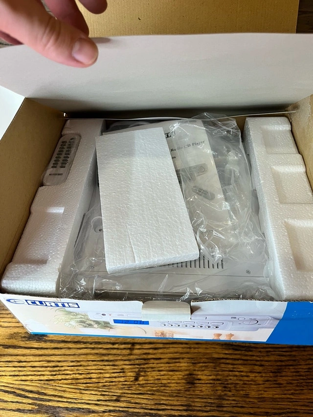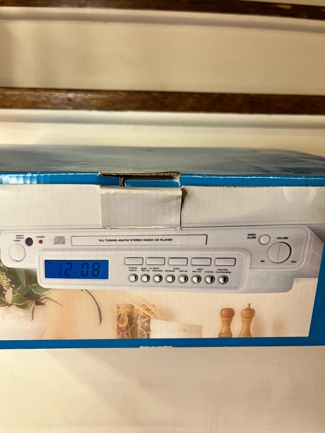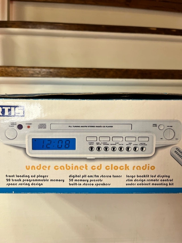 Listen to your favourite tunes with this Curtis under cabinet CD clock radio! This radio features a front-loading CD player, digital PLL AM/FM stereo tuner, large backlit LCD display, 20 track programmable memory, 30 memory presets, slim design remote control, built-in stereo speakers, and space-saving design. Check out my other listings for more cool stuff!