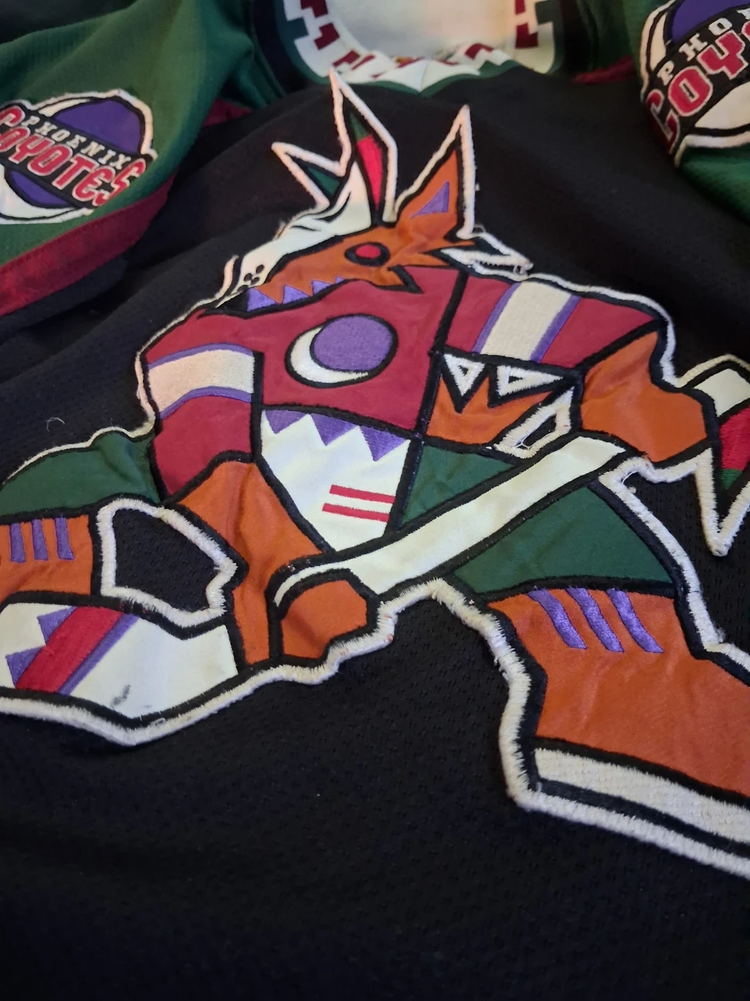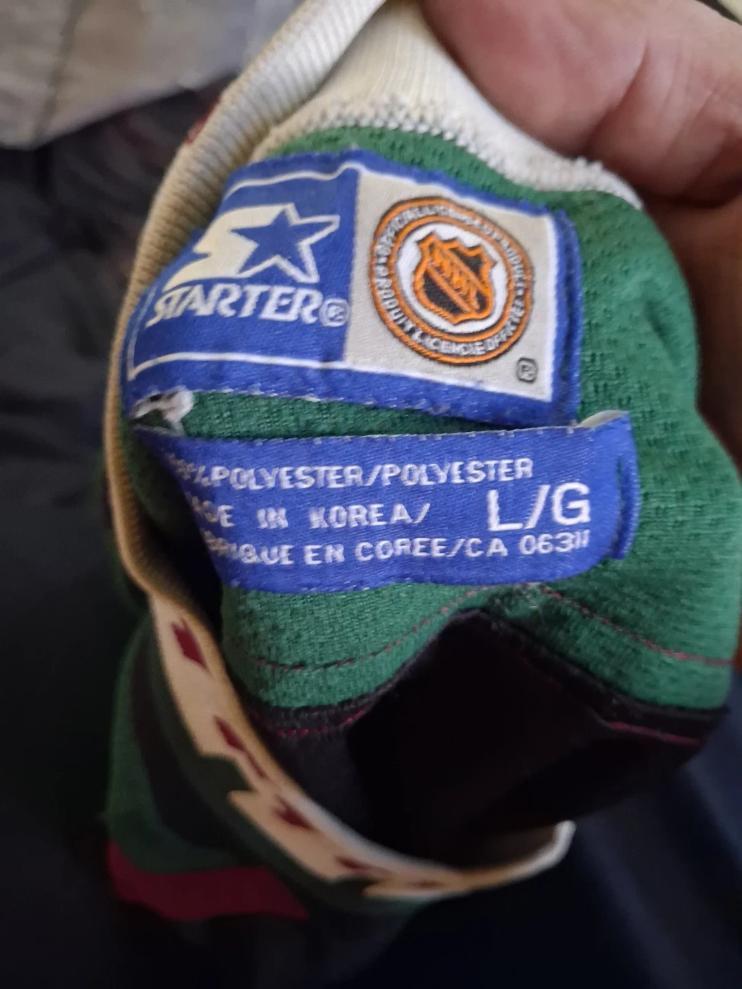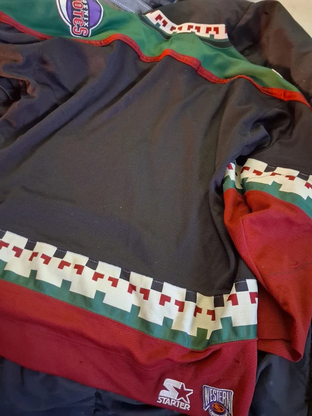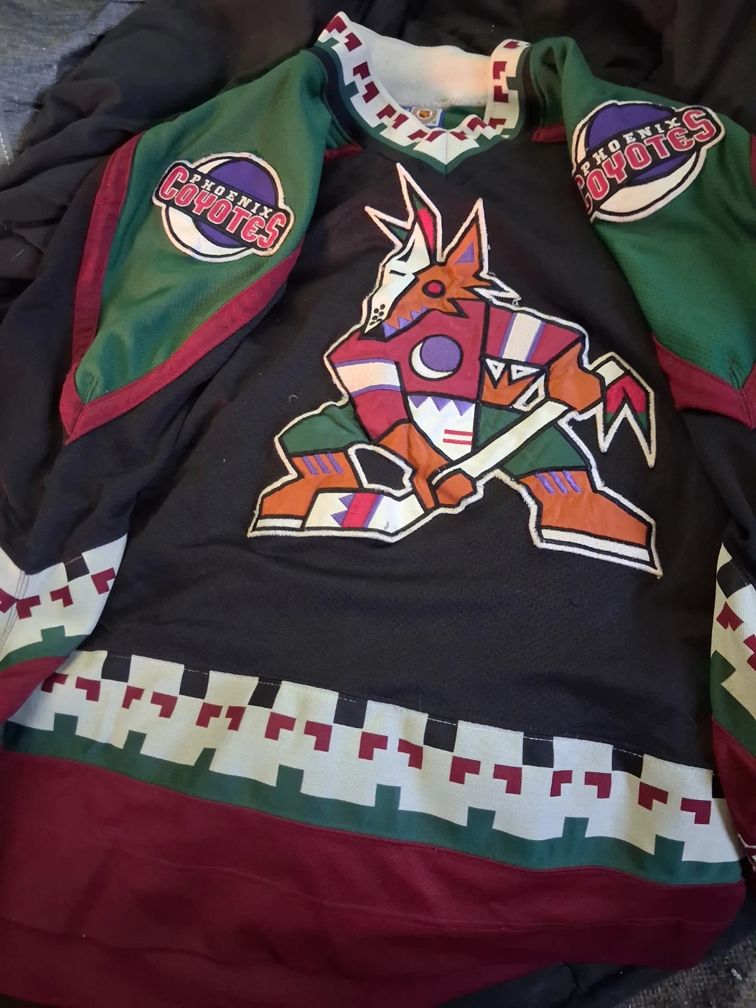 Starter brand Phoenix Coyotes hockey jersey. Size L/G. Made of 100% polyester and manufactured in Korea. Features the classic Coyotes logo and team colours.
